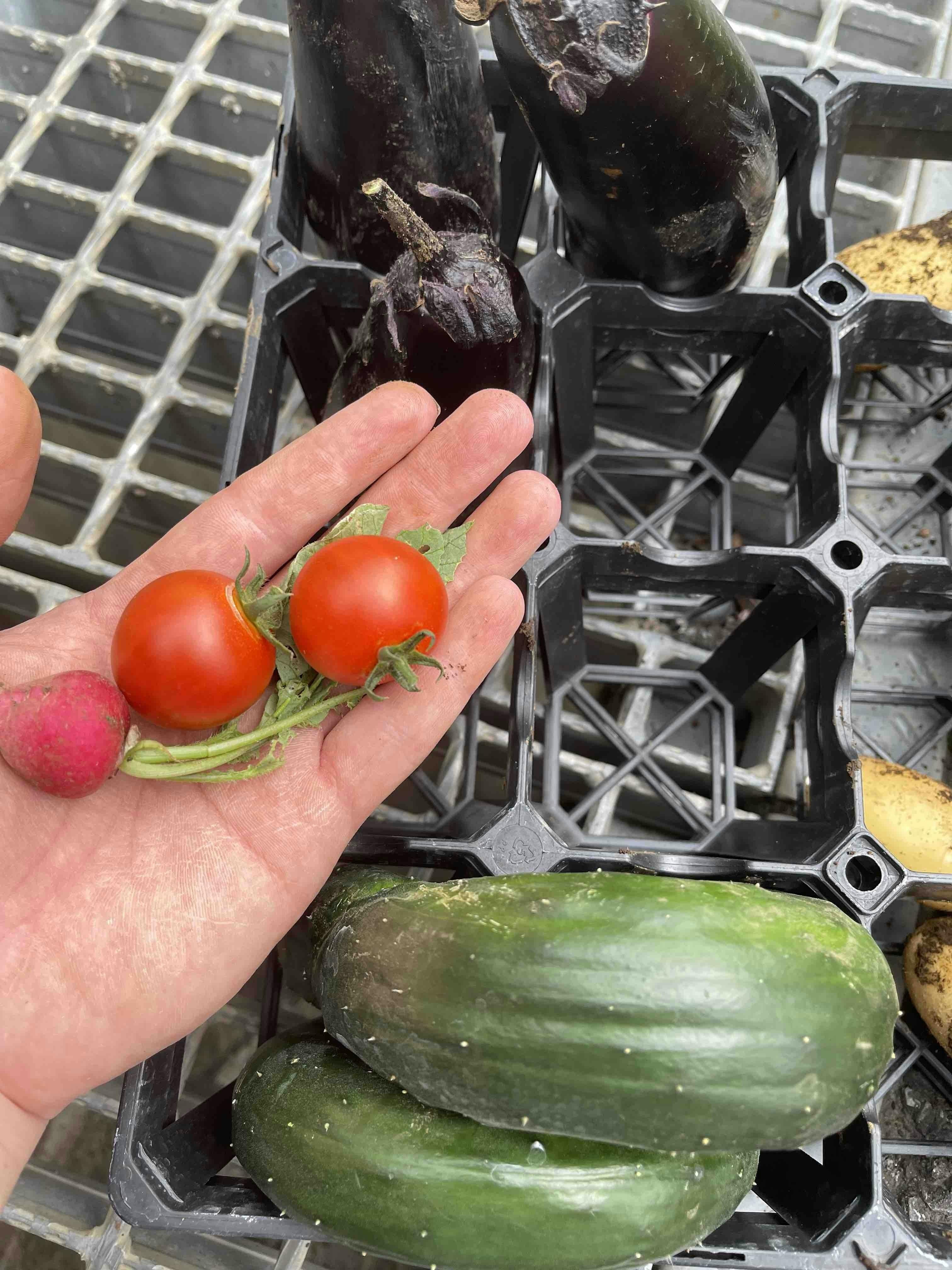 多くの野菜が順調に育ってきており、ナスやトマト、きゅうりがぽつぽつと収穫できています。
