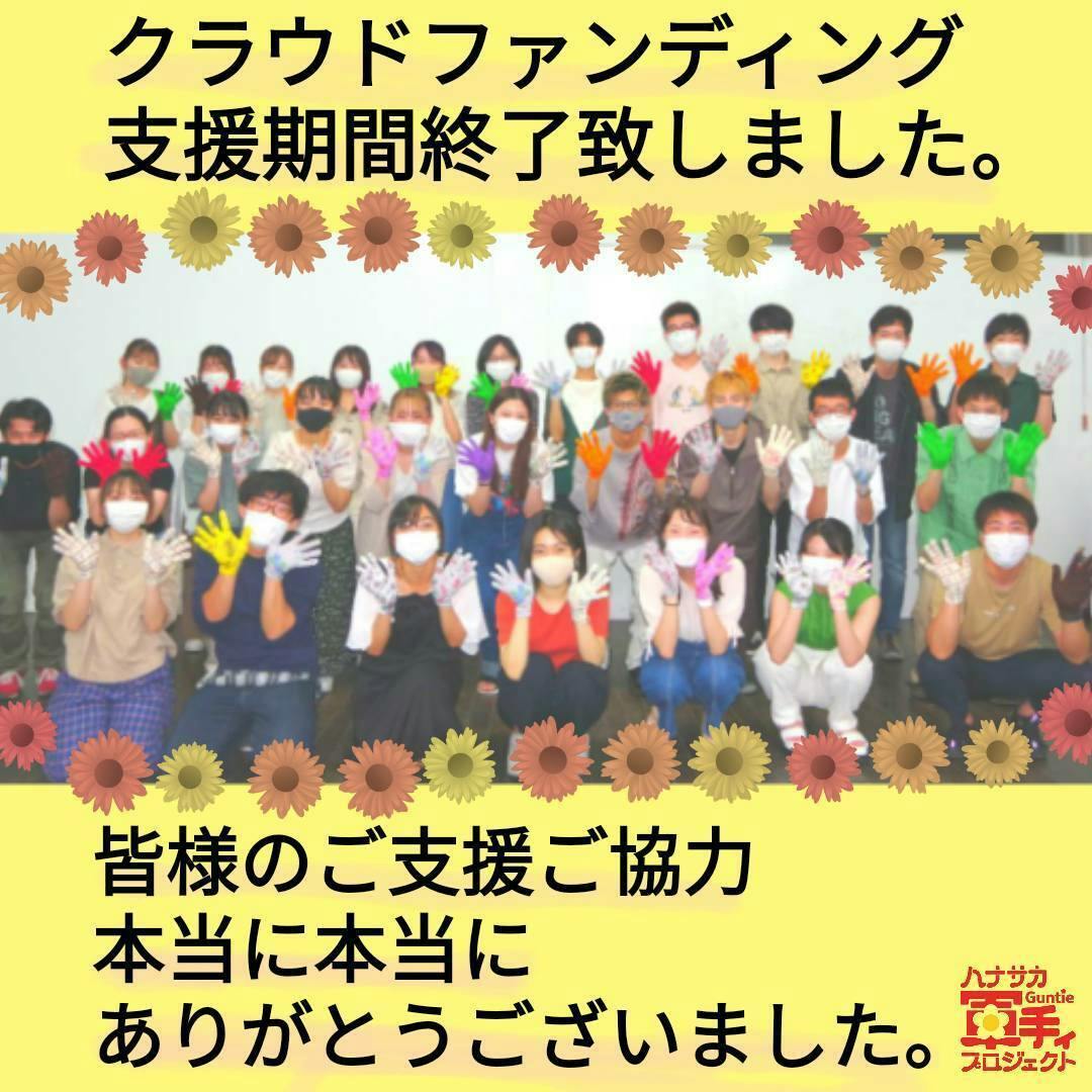 12/12をもちまして、ハナサカ軍手ィプロジェクトクラウドファンディングの