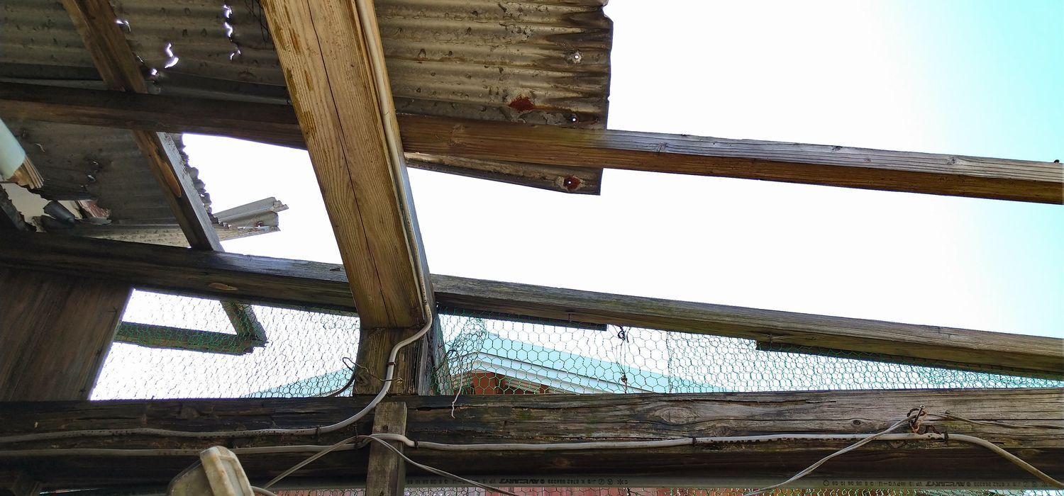 *納屋の屋根が壊れてます・・・修繕してここでは工具を使った技術の時間を持ちたいです。let's DIY!