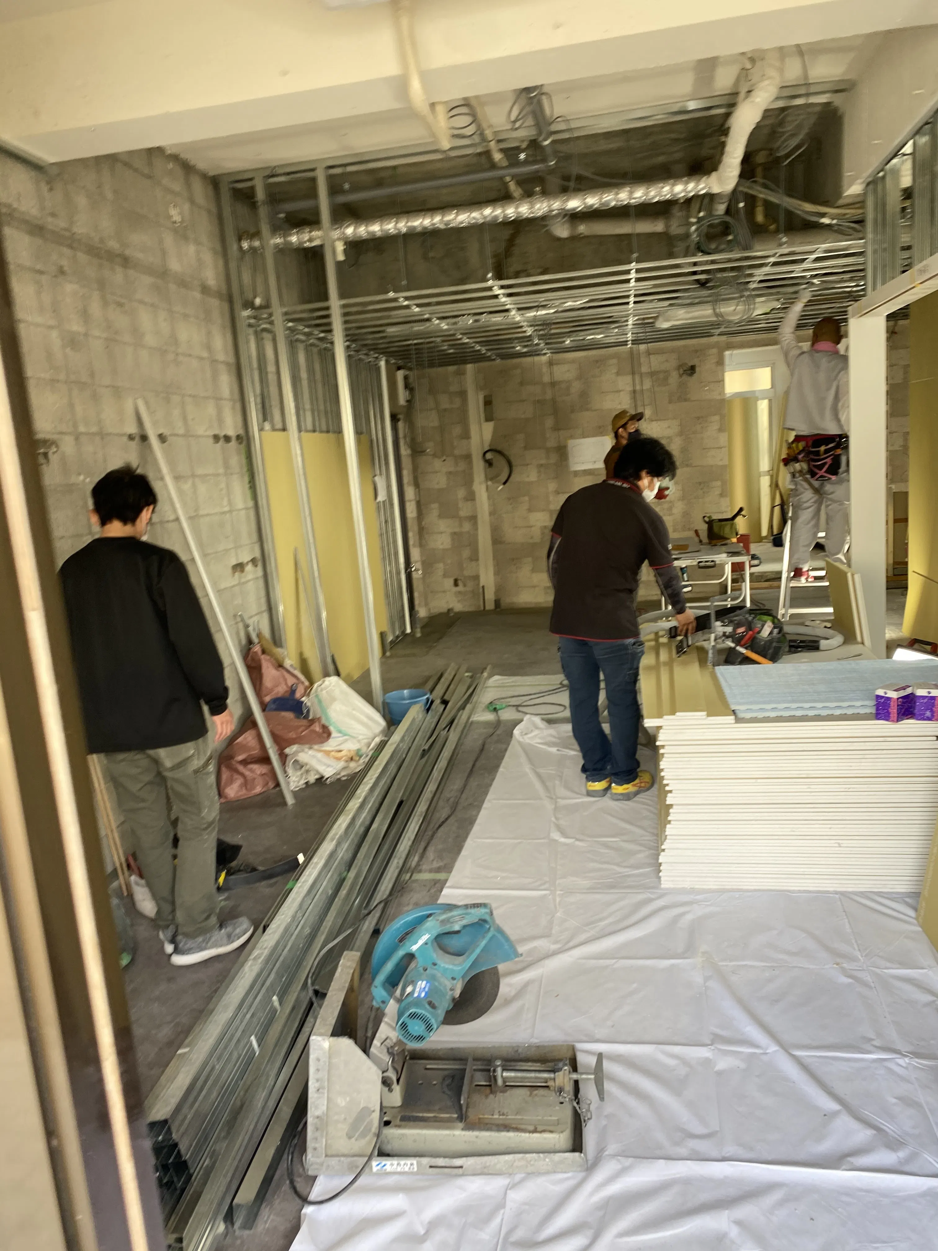 今日は朝から店舗によったら壁の下地もできて内装が着々と進んでました〜