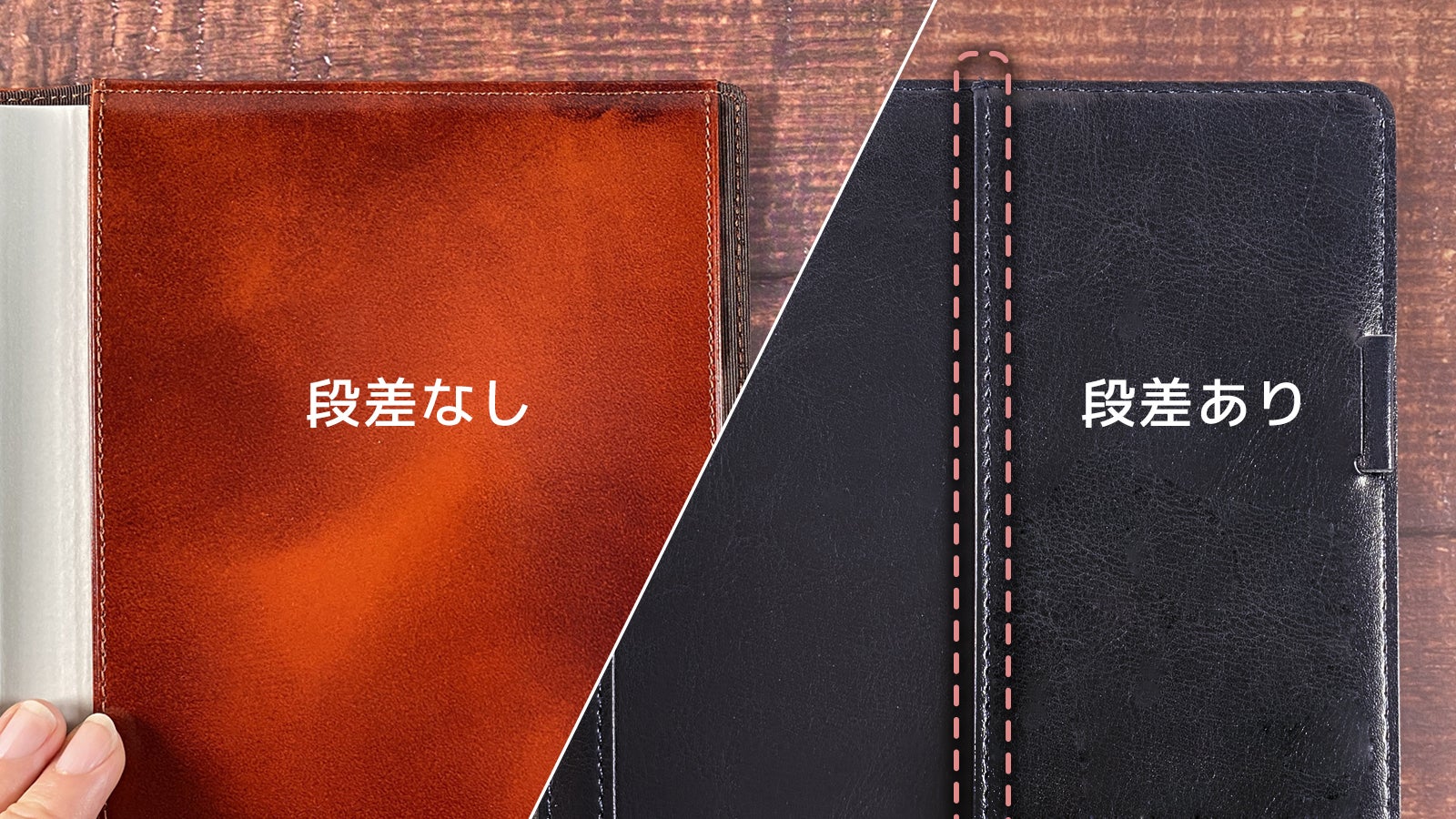 通常のノートカバー(システム手帳)で、書き始めまたは残り数ページを書く際、ポケット段あるいは差込部の段差が邪魔でイライラした経験はありませんか。
