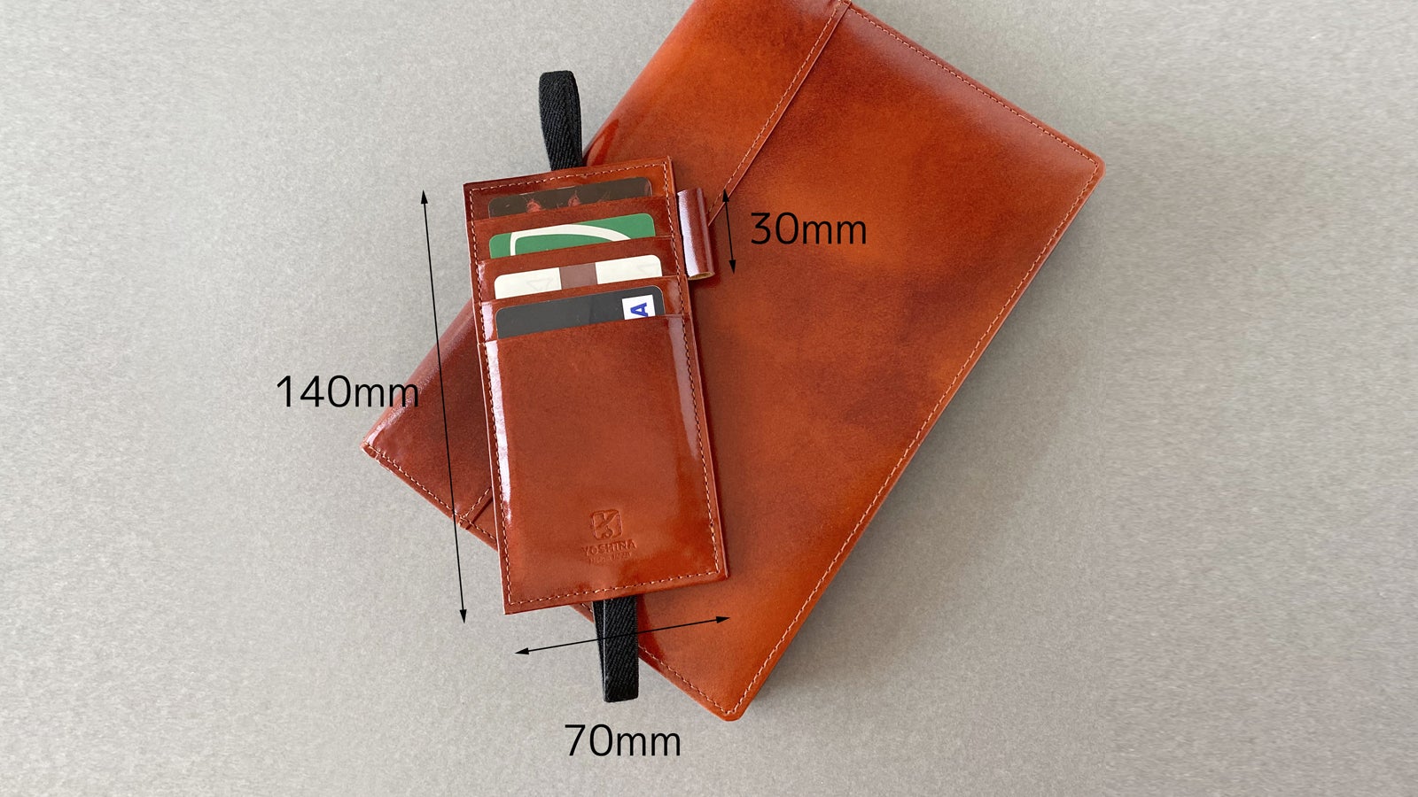 セパレート式のカード入れは予備名刺はもちろん、クレジットカードなども入れられます。外での作業または打合せの際にお財布代わりとして使用できます。