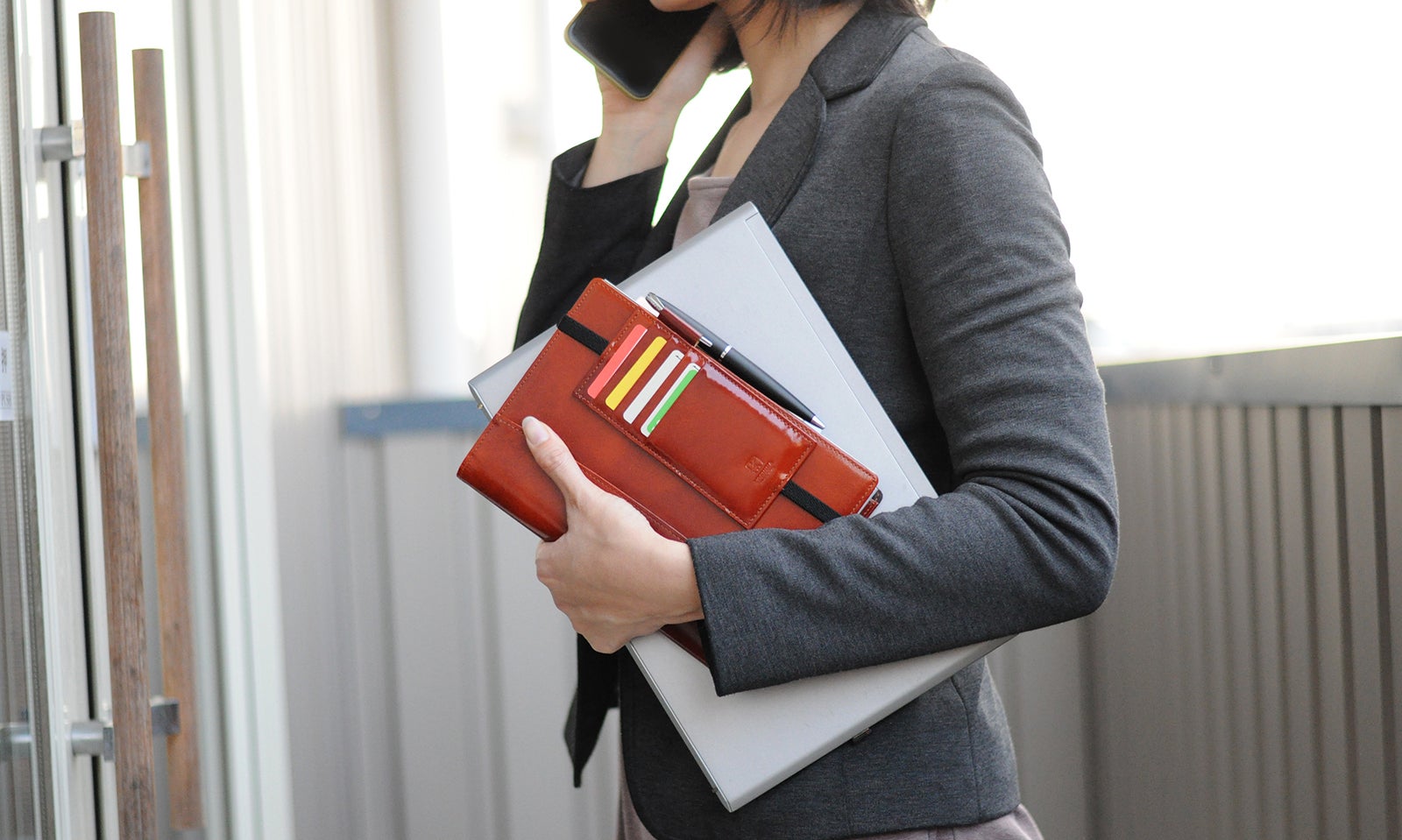 情報管理の徹底が求められている今、YOSHINA本革ノートカバーは、2冊のノートを同時に持ち歩け、次の訪問先では、異なるノートで打合せ内容を記録・管理することができます。B社訪問の際に、A社のノートは閉じたままであれば、打合せ内容を見られる心配もなくなります。