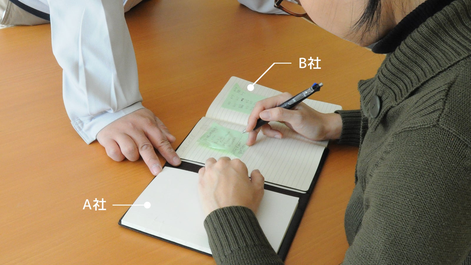 忙しいビジネスパーソンは外回りで、一日に何軒もの取引先を回ります。同じノートを使用している場合、A社での打合せ内容が次の訪問先のB社に見られてしまうということを心配した経験はありませんか。