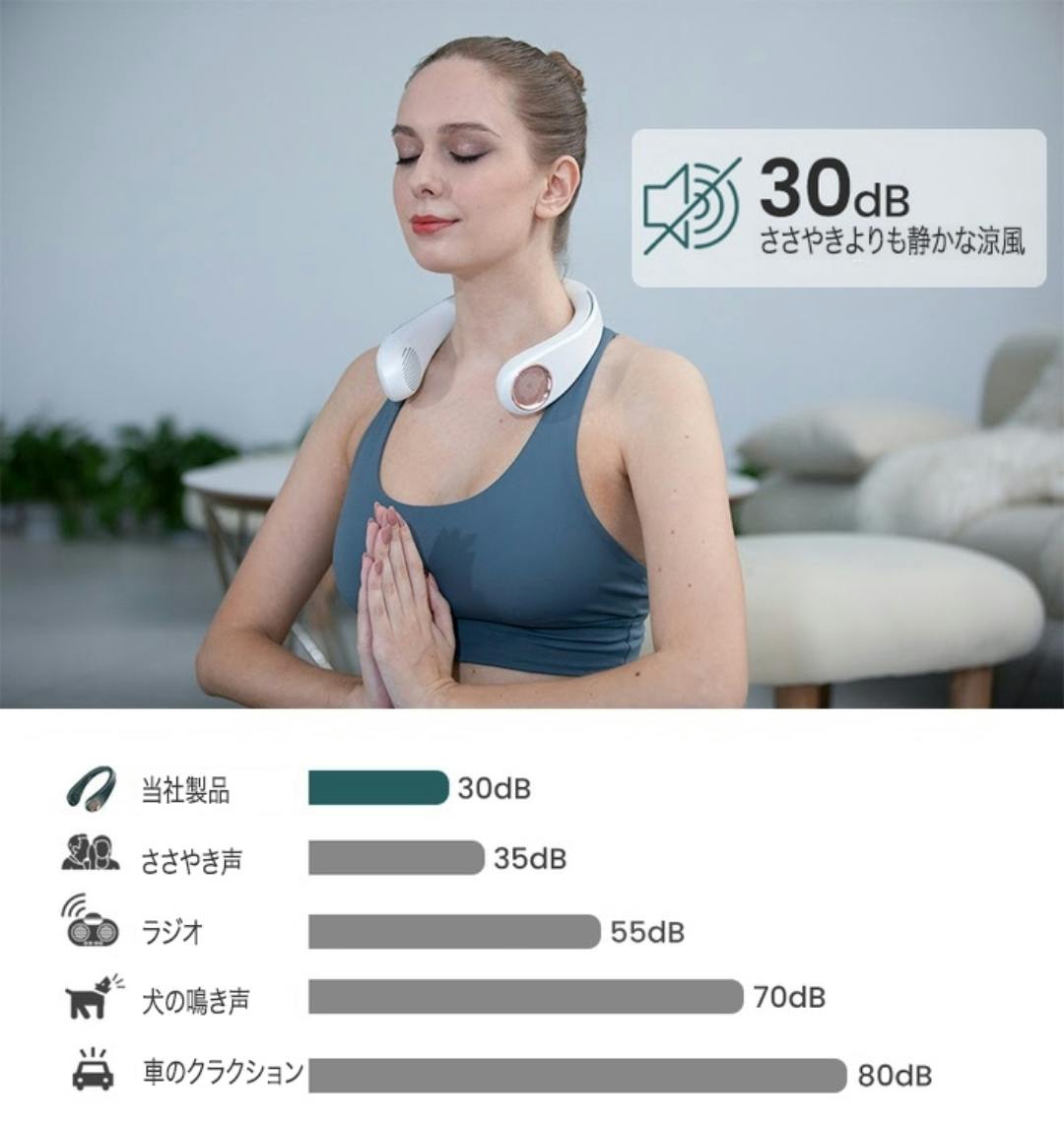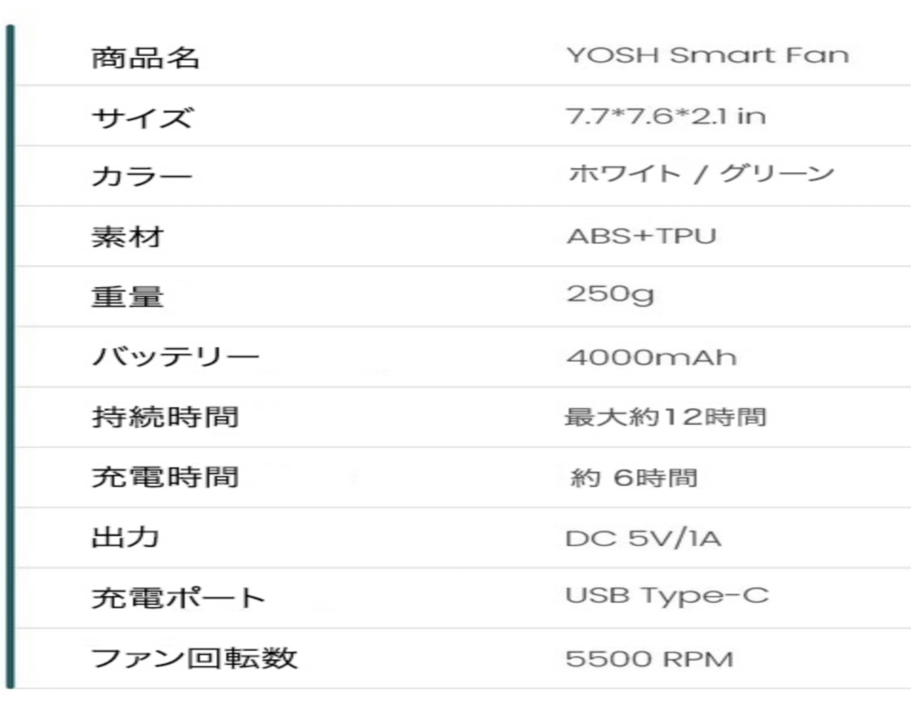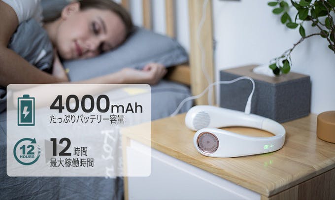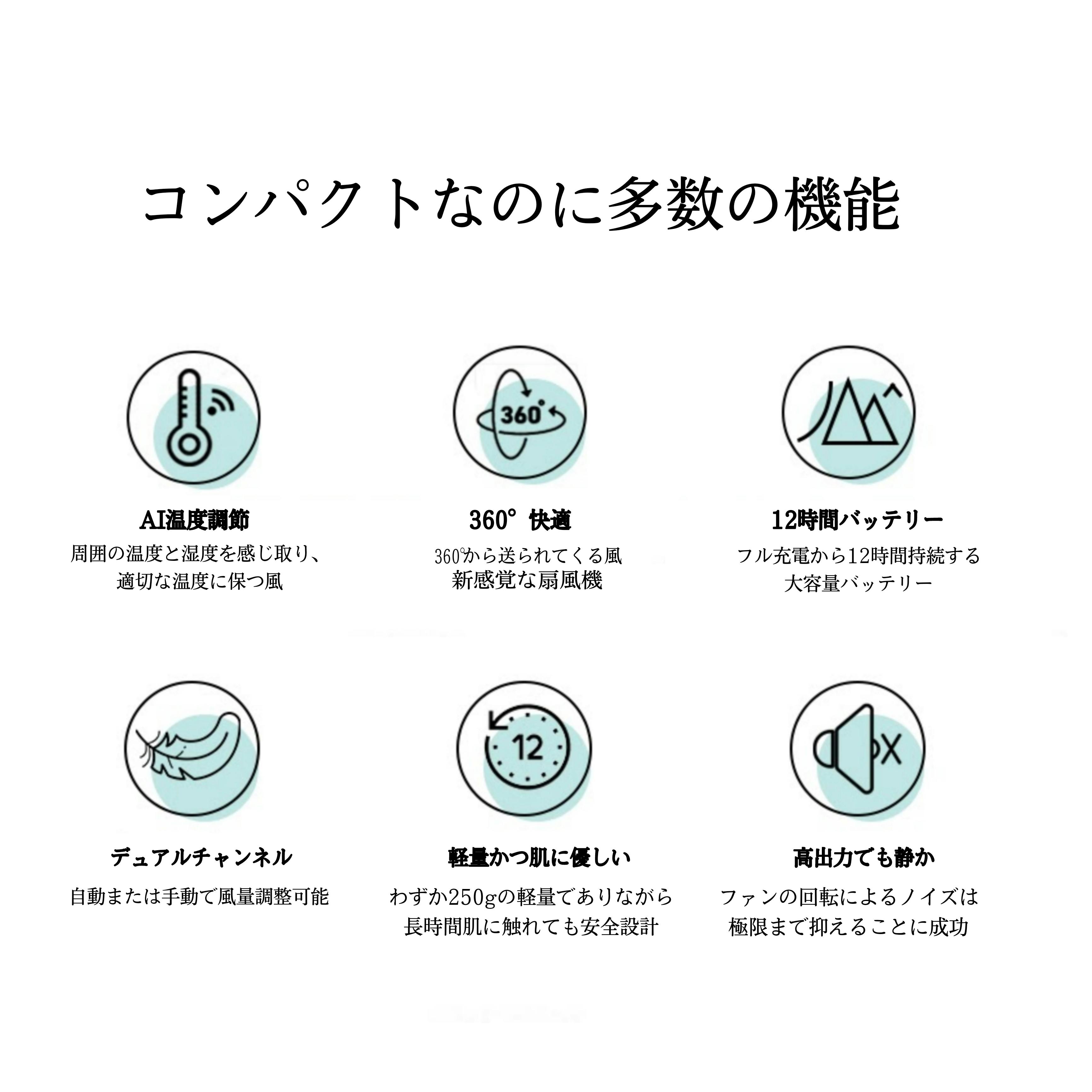 250gの人間工学に基づいた軽量デザイン周囲の温度と湿度を感じ取り、適切な温度を保つAI機能12時間持続と囁き声より静かさを実現したポータブル扇風機!