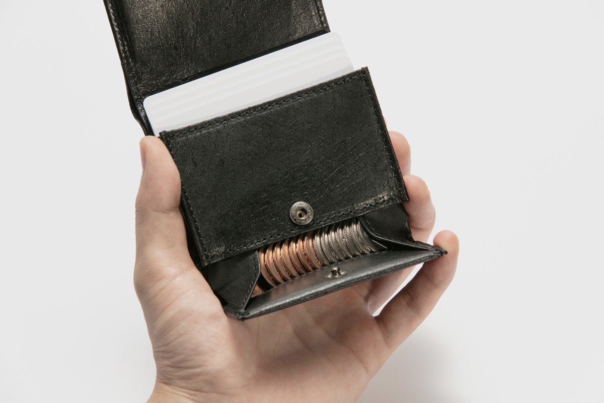 「今までの財布は、収納するモノ・数・場所が決められていて、ユーザーは財布に合わせた使い方を強いられました。カードの枚数が少ないと使われないスペースが生まれたり、小銭が増えると財布が膨らんだり。そうした不自由を解決し、身軽に出かけられる『最小のカバン』 を目指してデザインしました。」