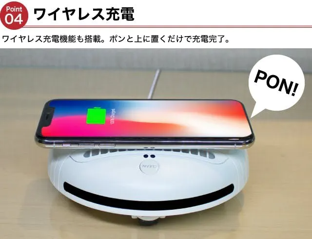 ワイヤレス充電機能も搭載。ポンと上に置くだけで充電完了。