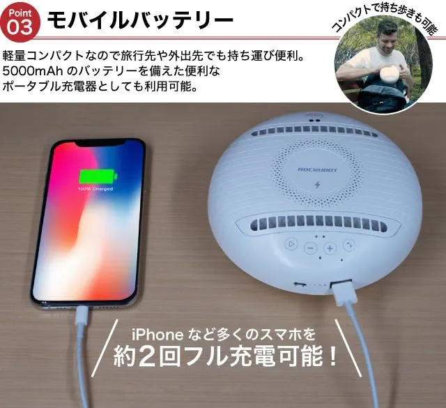 5000mAhのバッテリーを備えた便利なポータブル充電器としても利用可能。