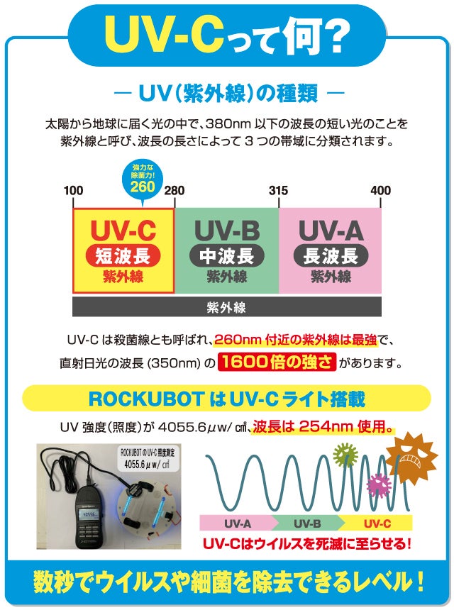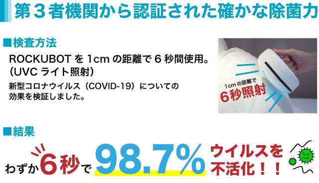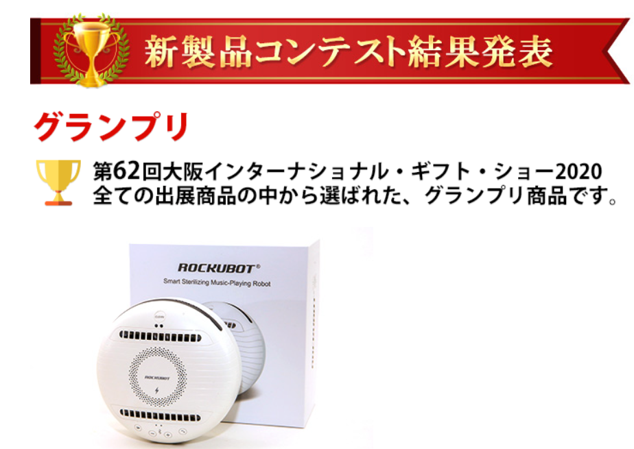 除菌ロボットROCKUBOT(ロックボット)は日本で意匠権登録済み、中国・アメリカ・ヨーロッパ各国で外観特許・発明特許取得済みの製品となります。類似製品にご注意ください。