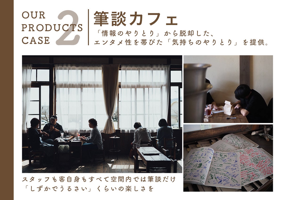 オリジナルの販売、出張筆談カフェ、ワークショップなどを展開し、筆談の魅力を伝えている。