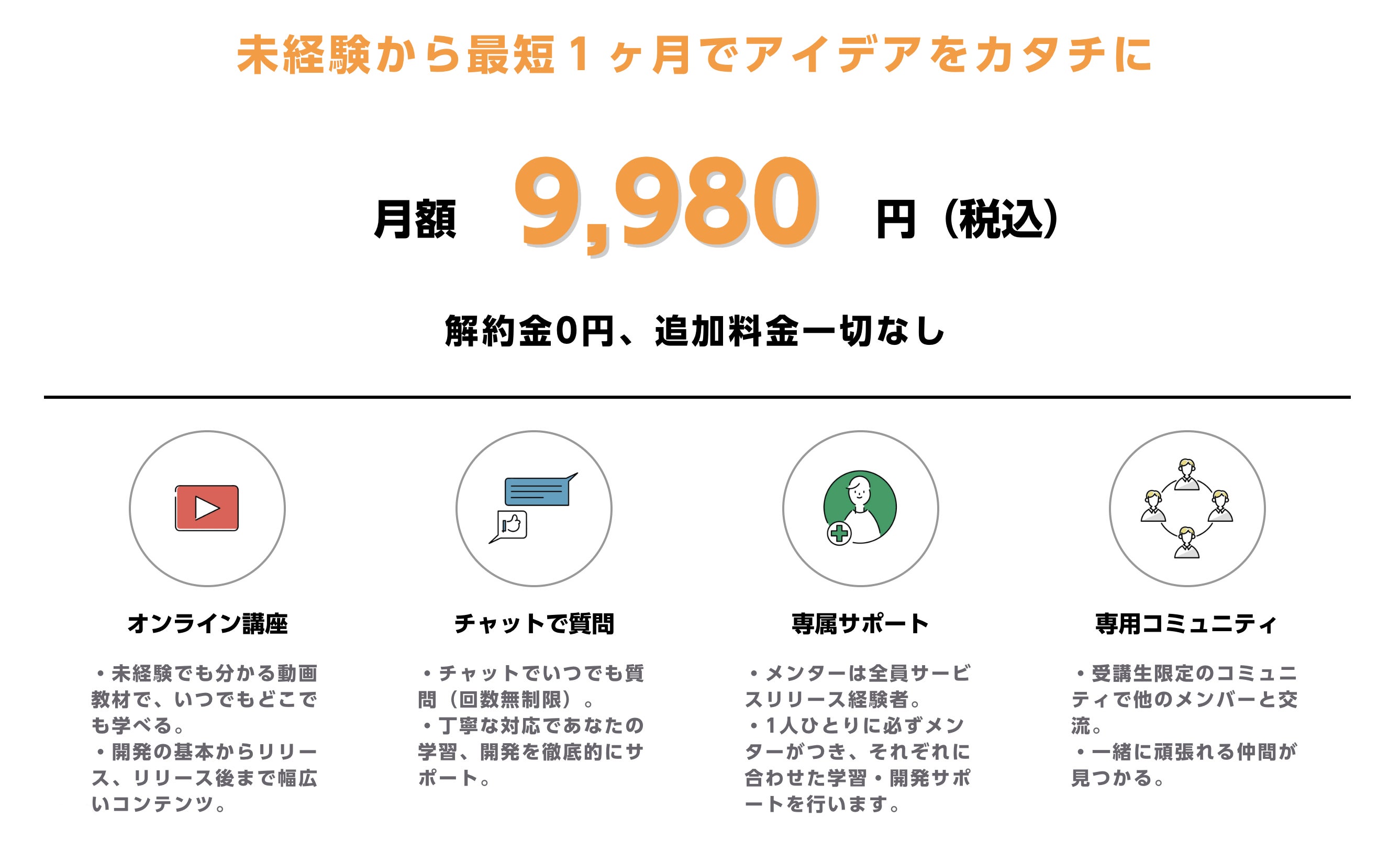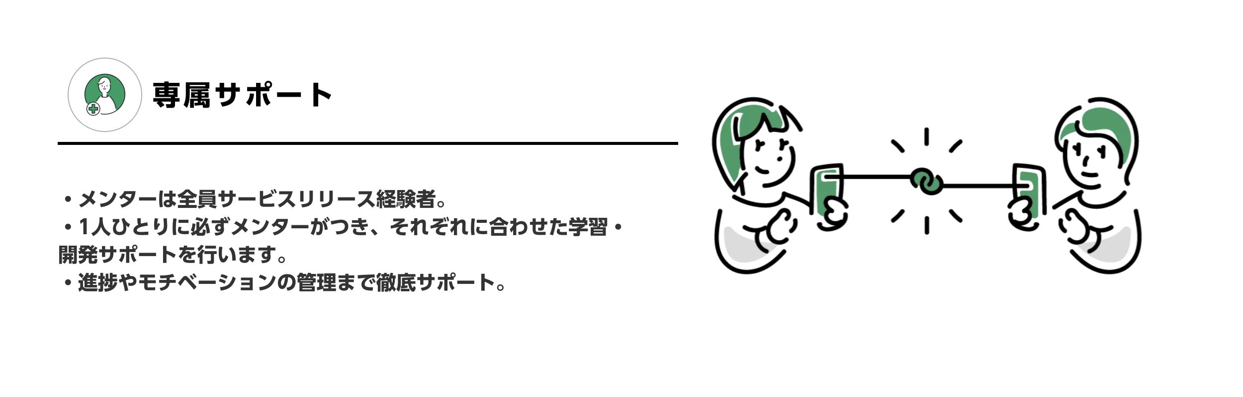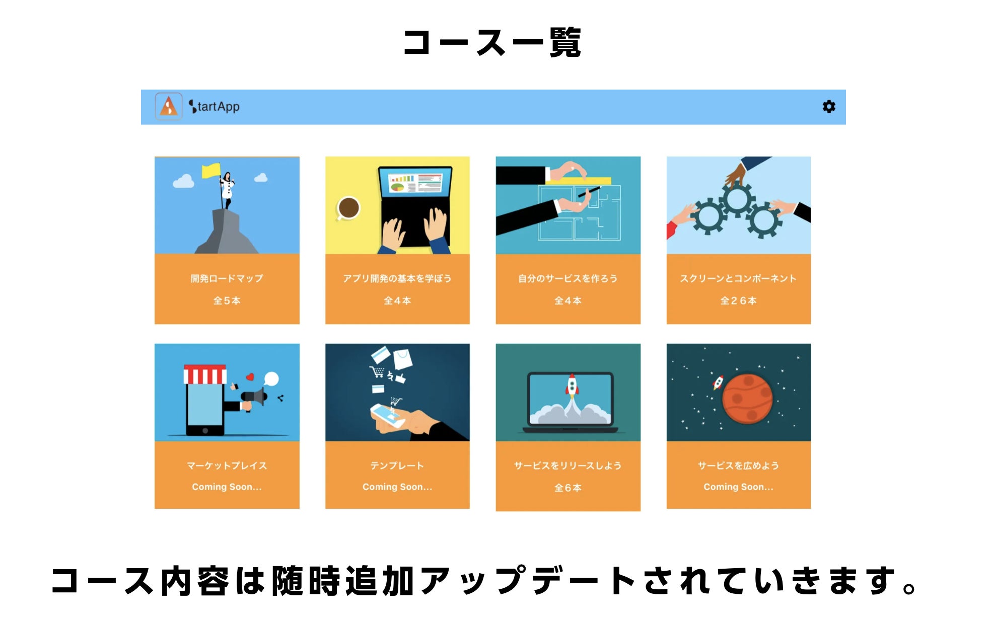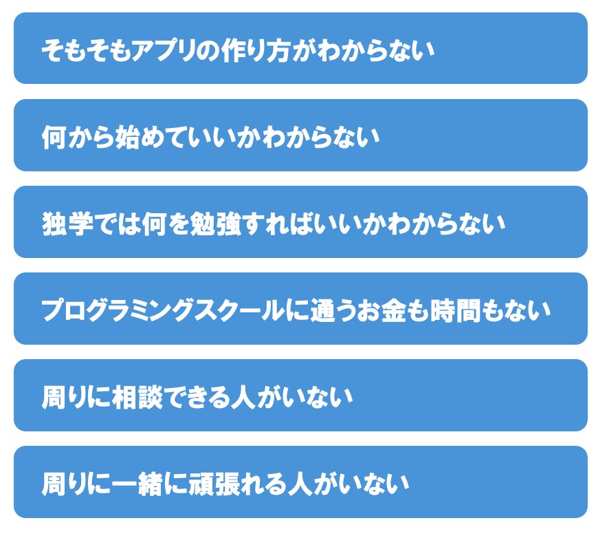 A:全く問題ございません。アプリ開発やプログラミングの経験がない方でも、0からアプリをリリースできるようになるまでの教材をご用意しています。基本的なことからリリースまで徹底してサポートさせていただきますのでご安心ください。