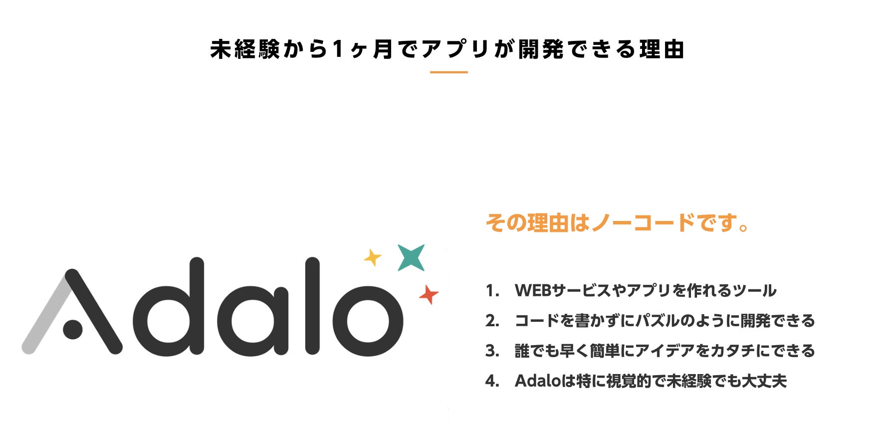 具体的にはノーコードというアプリ開発ツールのAdaloを使い、アプリ開発初心者や未経験の方が自身のアイデアをアプリにするための支援、教育事業をしたいと考えています。