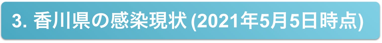 香川県では、2021年5月5日時点で1,345人もの新型コロナウイルスの感染者が確認されており (※1) 、現在の感染者の急増が続くと、医療体制の逼迫も予想されます。そして、4月23日(金曜日)には蔓延警戒警報が発令されました (※2) 。
