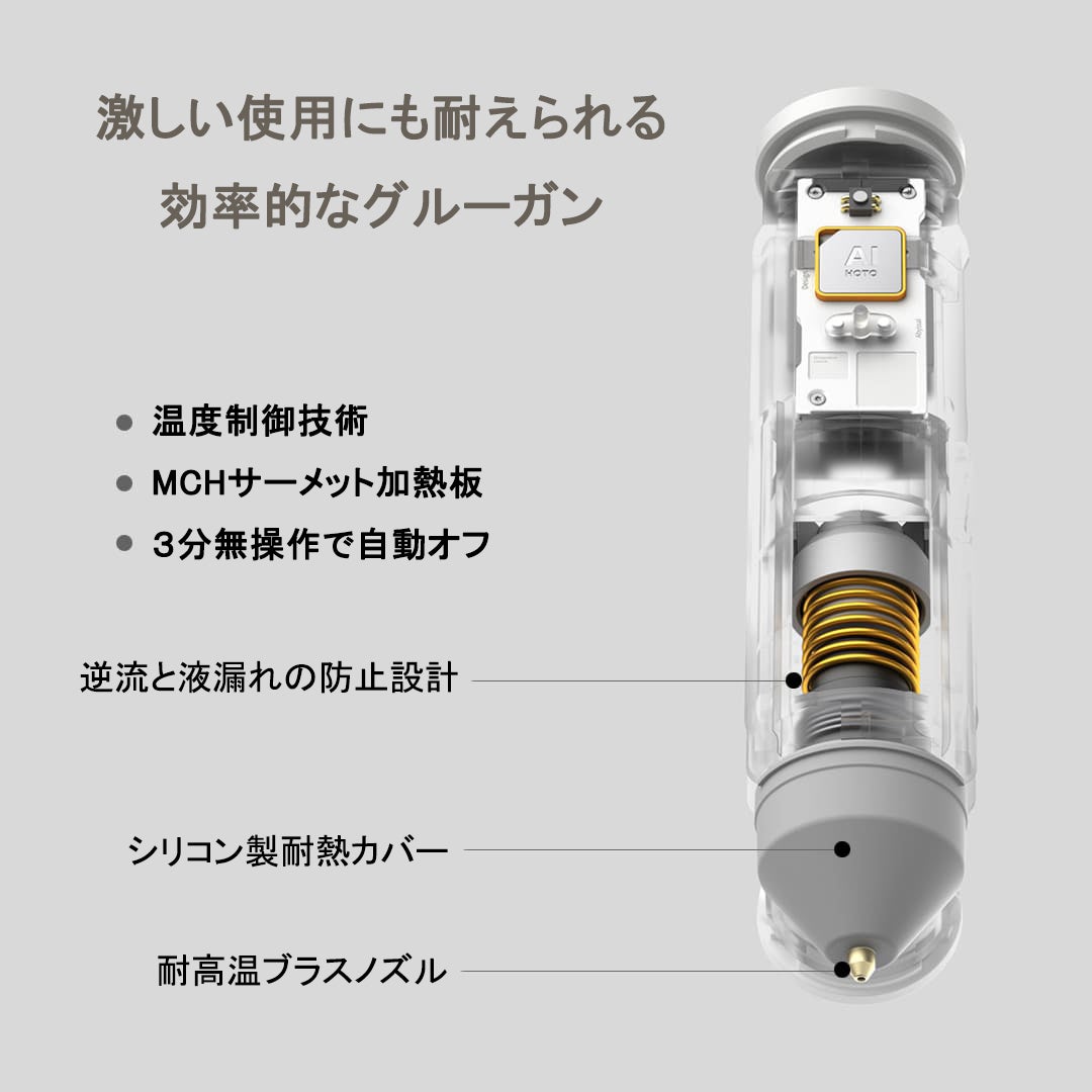 直径7mm、長さ125mmの汎用接着剤10本が付属し、環境にやさしく、粘度が高く、溶けても煙や臭いがなく、手軽にお使いいただけます。接着剤は、毒性・引火性のある溶剤やかぶれの原因となるアミンは一切含みません。