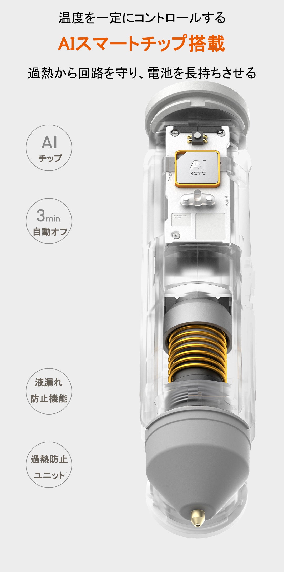内蔵のスマートチップは、加熱温度を妥当な範囲内に維持して、コンポーネントの損害や過度の溶融を防ぎます。グルーガンは3分間使わないと自動で電源が切れる機能が付いています。他の作業に集中していて、ついうっかり電源を切り忘れてしまう...そんな心配はいりません。