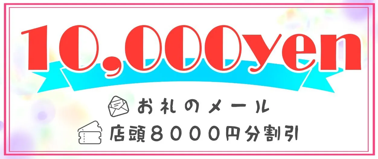 お礼のメールと店内商品ご購入時に使用できる紙の割引券8000円です。
