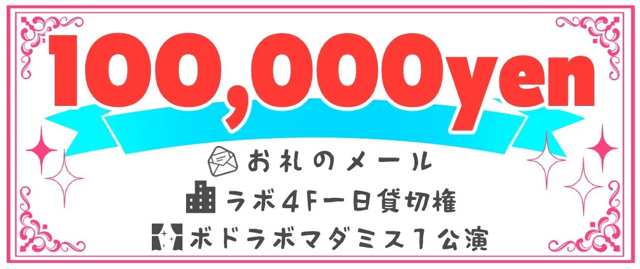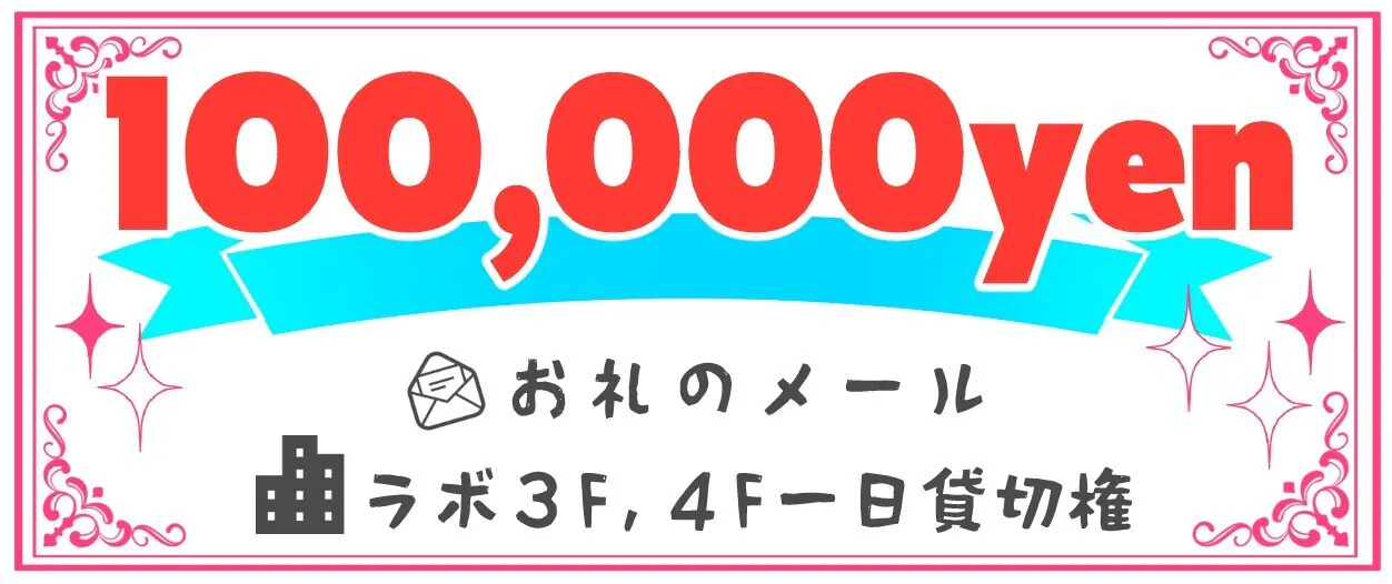 お礼のメールとボドラボの3F・4Fの1日貸切権です。
