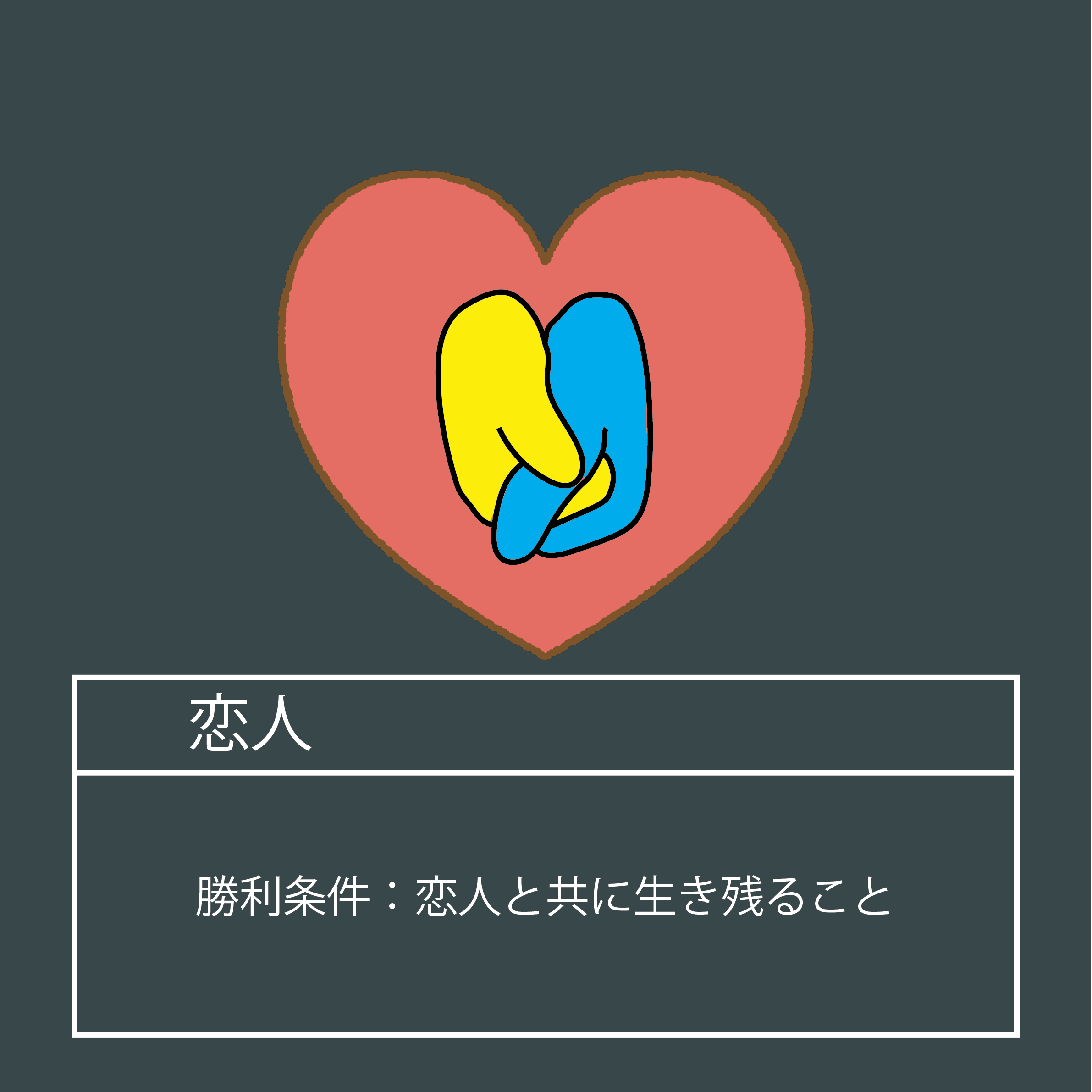 2人1組の役職になっています。恋人は全員の中からランダムに選ばれる為、