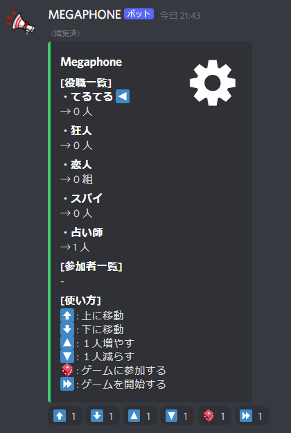 ※このDiscord Botは役職を選ぶためのBotです。ゲームの終了条件などは自分たちで考え、自由に設定してください