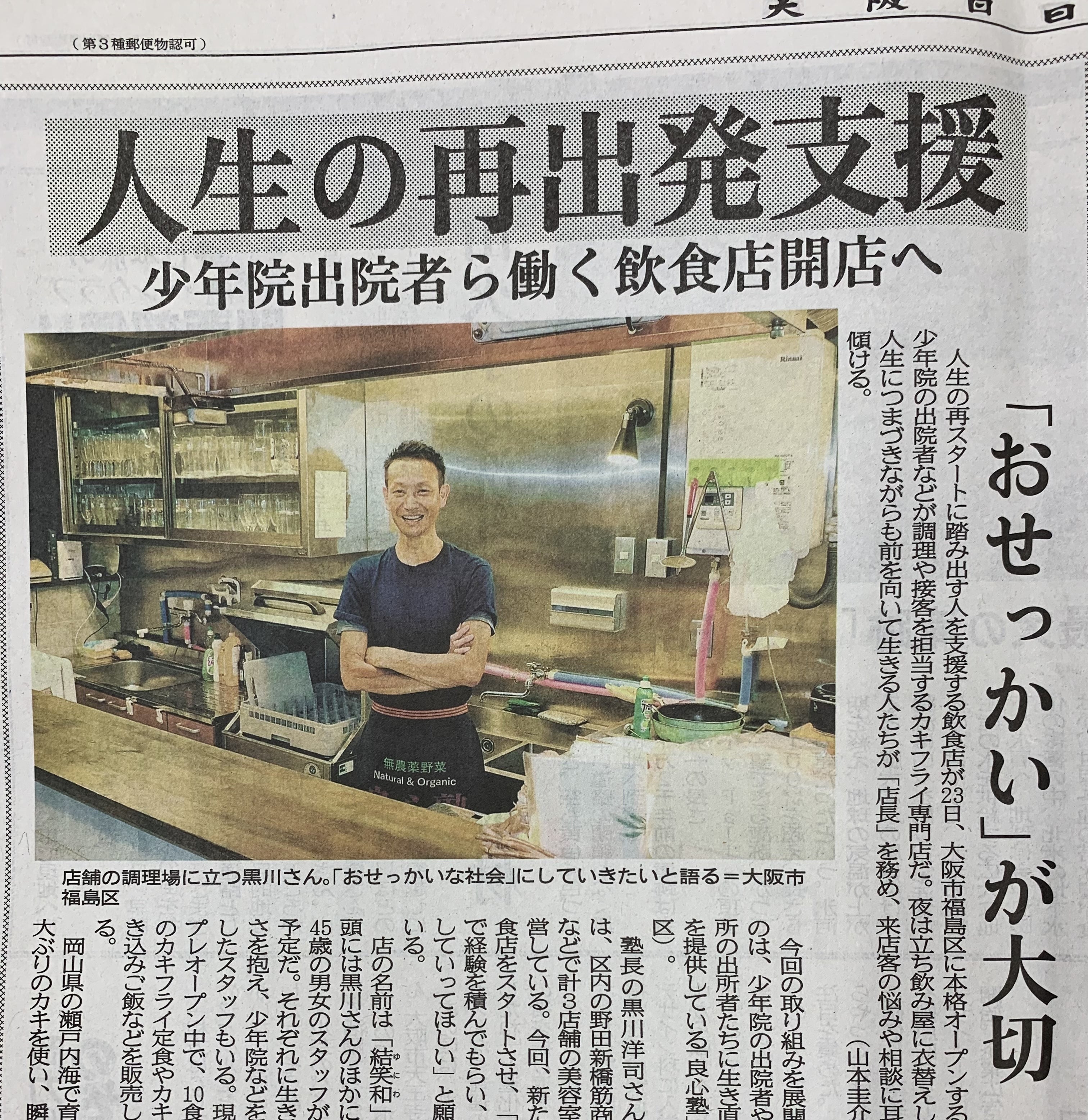 私達が目指している誰一人取り残さない社会のモデルになるお節介な飲食店「結笑和」の活動をオープン前に大阪日日新聞さんが取材に来て頂き先日、新聞とWEBニュースでも掲載してくれました!!コロナでやりたかったプレオープンも延期になっていますが残り16日間、出来る事を考え全力で頑張ります!!