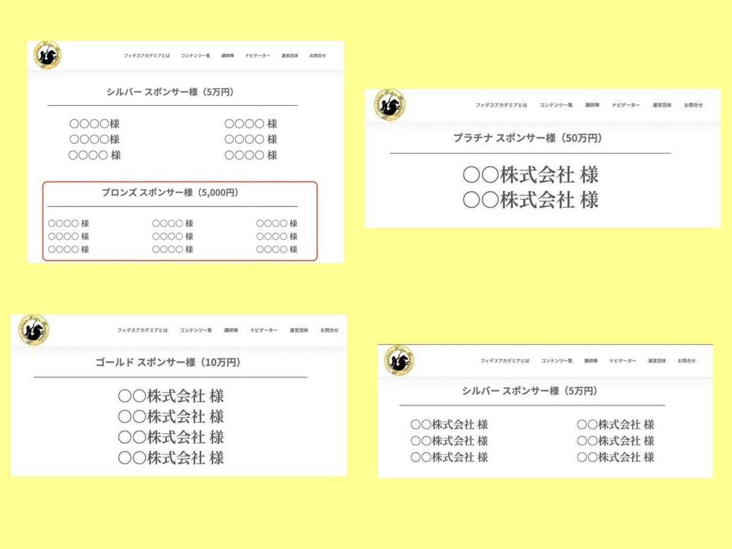 ◆スポンサーのリターンには、<プラチナ><ゴールド><シルバー><ブロンズ>の4種類があります。