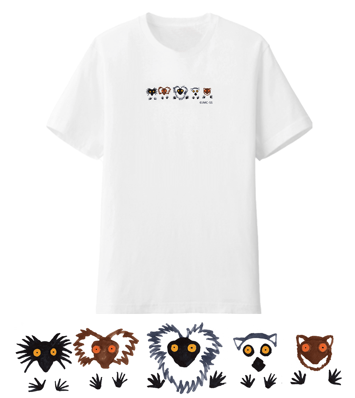 支猿者カード + 飼育の坂口さんが描くキツネザルのオリジナルTシャツ (白・綿) (数量限定)