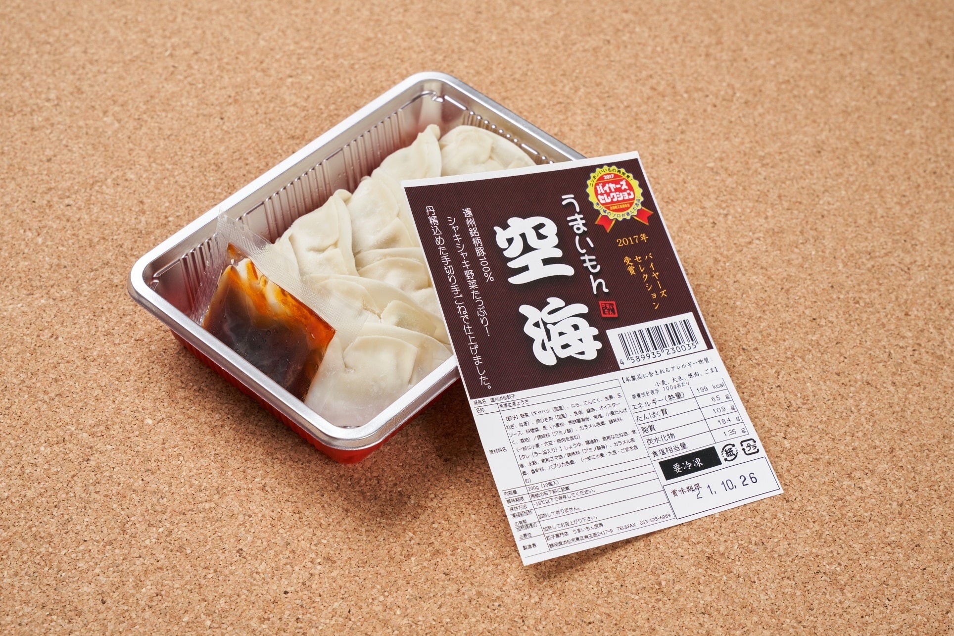 | 原材料 | 餡 豚肉/キャベツ/ニラ/味噌/砂糖/粒状大豆蛋白/にんにく 白絞油/発酵調味料/醤油/胡麻油/生姜/ゼラチン 香辛料/調味料(アミノ酸等) 皮 小麦粉/粉末状小麦蛋白/澱粉/食用植物油脂/食塩/砂糖 |