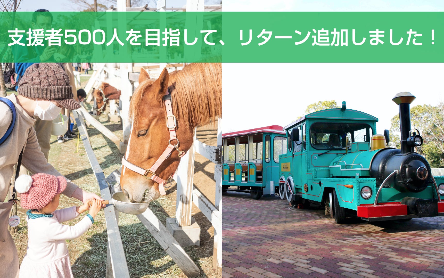 そしてこの度、これからも多くの方にご支援をいただくため、新たなリターンとして園内にあります「ふれあい動物の里」の利用券をご用意いたしました。