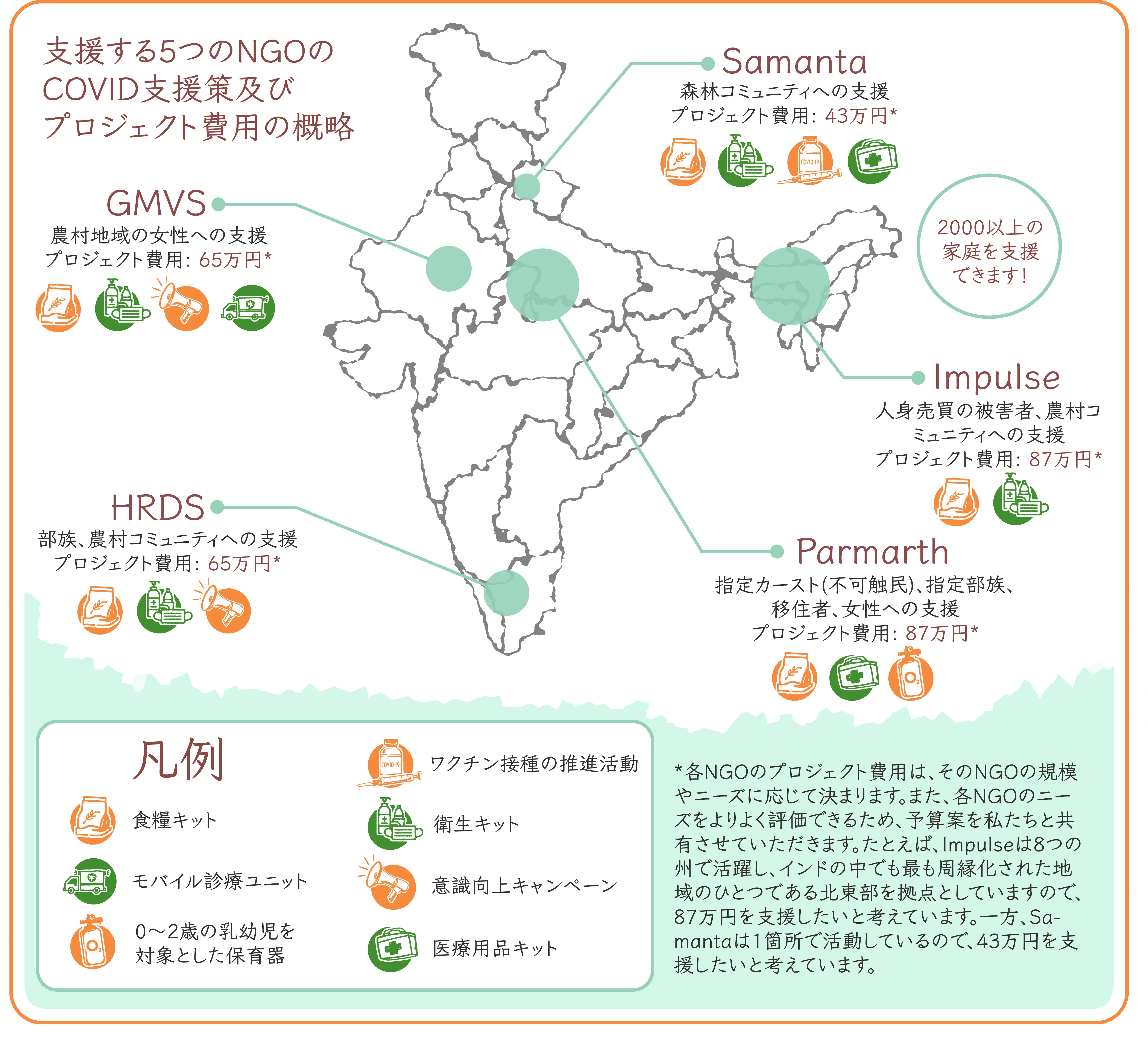 このアジア・イニシアチブズとのプロジェクトを通して、支援が行き届きにくい地域と活動するNGOを応援し、インドでのコロナ危機に対して団結する意を示すことで、それらの地域に住む人々に手を差し伸べたいと考えています。