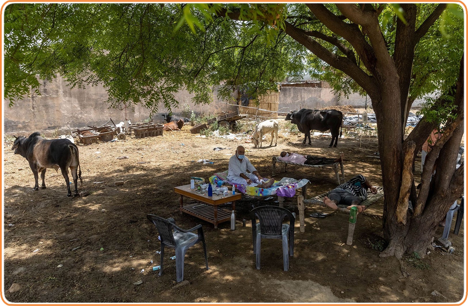 インドの村にあるコロナ患者のための仮設野外診療所の様子。[出典: Reuters]