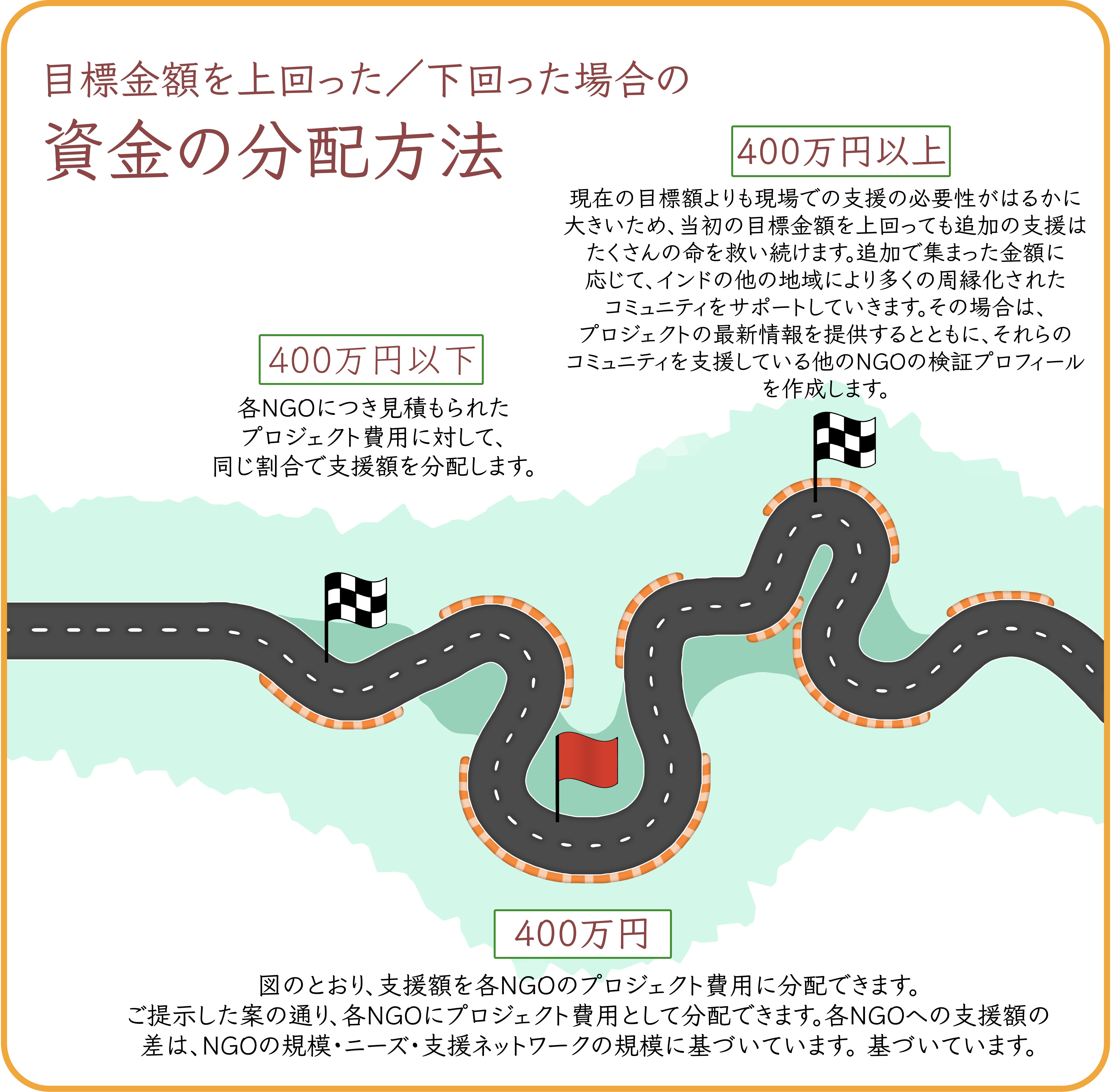 ご支援いただいた支援金が目標額と異なる場合の計画は以下の通りです。