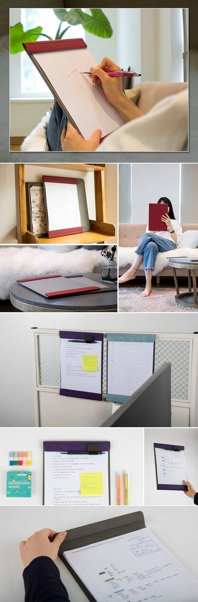上下の強力なマグネットと紙の角までしっかり保護してくれるので紙の動きやシワなく使用が可能です。さらなる高級感をあらわす高級PU素材使用で裏紙や再生紙をよりかっこよく使用できるようになりました。