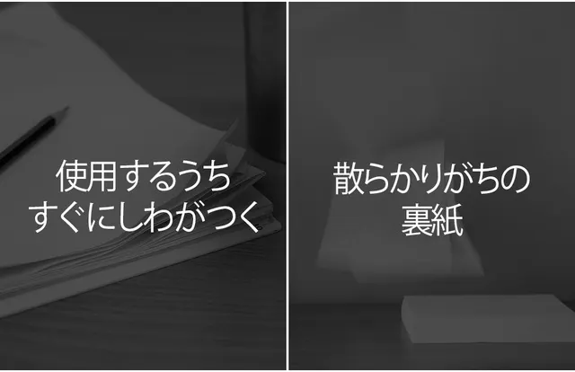 使用すればすぐにしわがついたり、破れたり、散らかる裏紙。