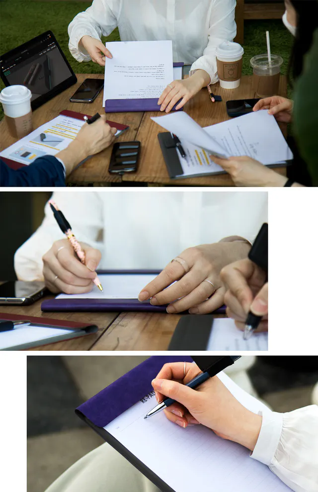 強力なマグネット搭載で最大50枚までしっかり固定できます。いつも自由な持ち運びと収納が可能できるように設計されたアイテムとしてA4-PAD使用での高い満足感を皆様にプレゼントします。(*マグネット搭載による電子機器の破損の心配はありません。*紙通帳などには遮へいされませんのでご注意ください。)