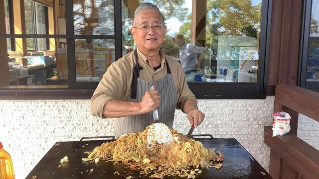(斑尾祭りで、振る舞い焼きそばの様子)