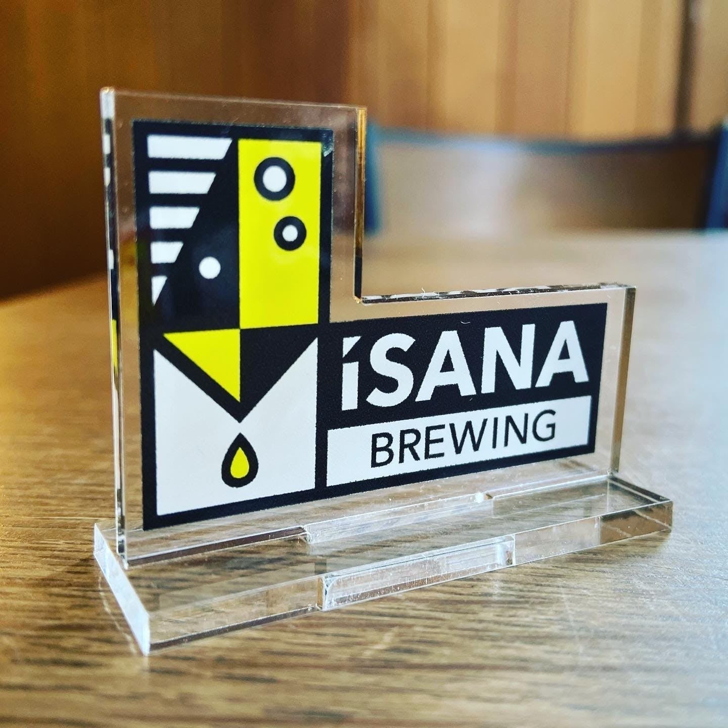 缶ビールをご支援いただいた方には上のアクリルロゴディスプレイと限定シールが入っています。