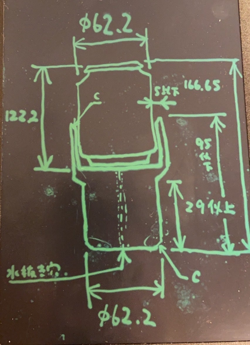 ①ポンチ絵で下駄となる治具の図面を設計します。