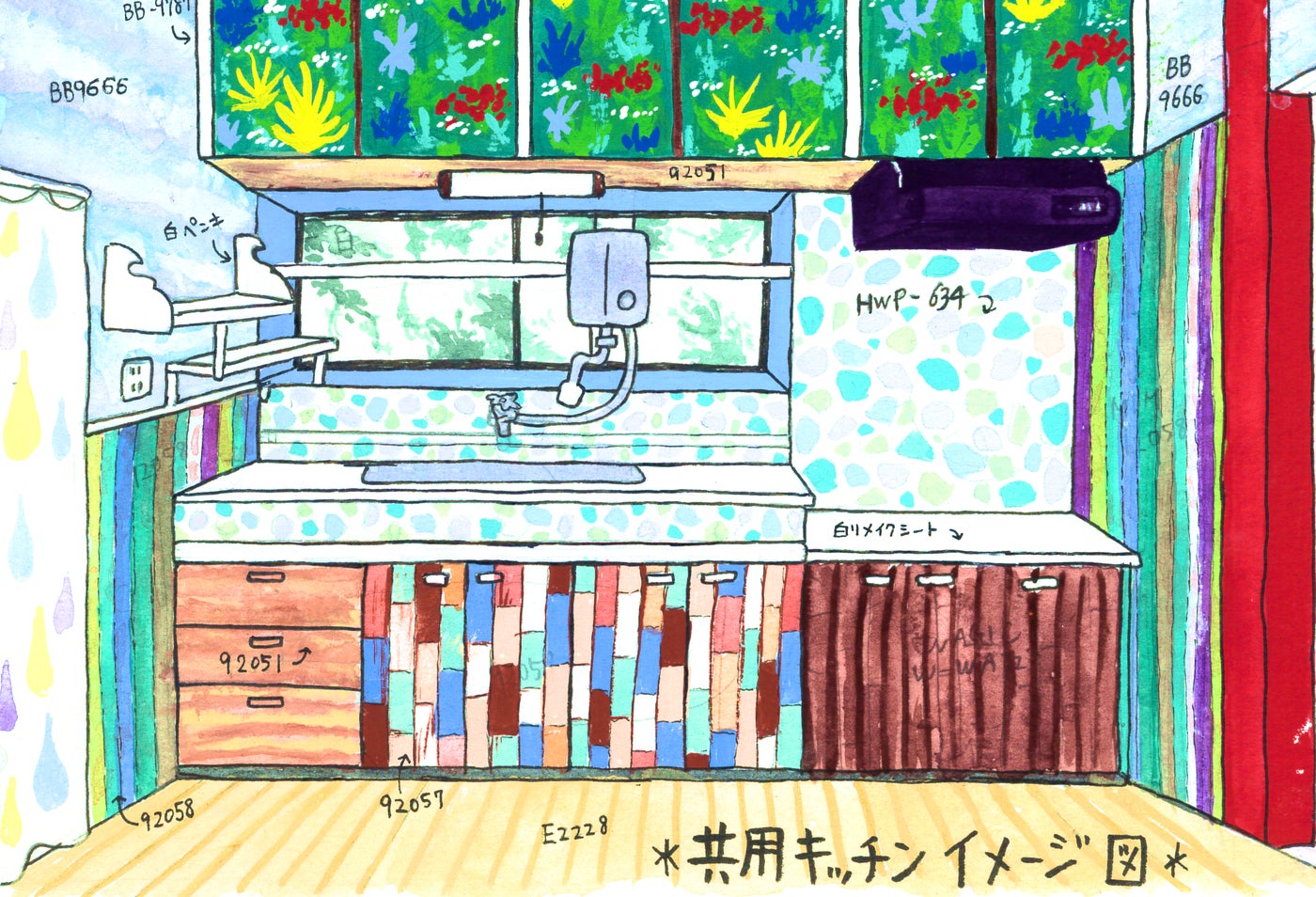 現在の共用キッチンの正面図。