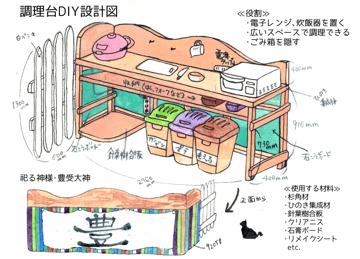 キッチンラックとしての機能を兼ねた調理台をDIYで制作します。