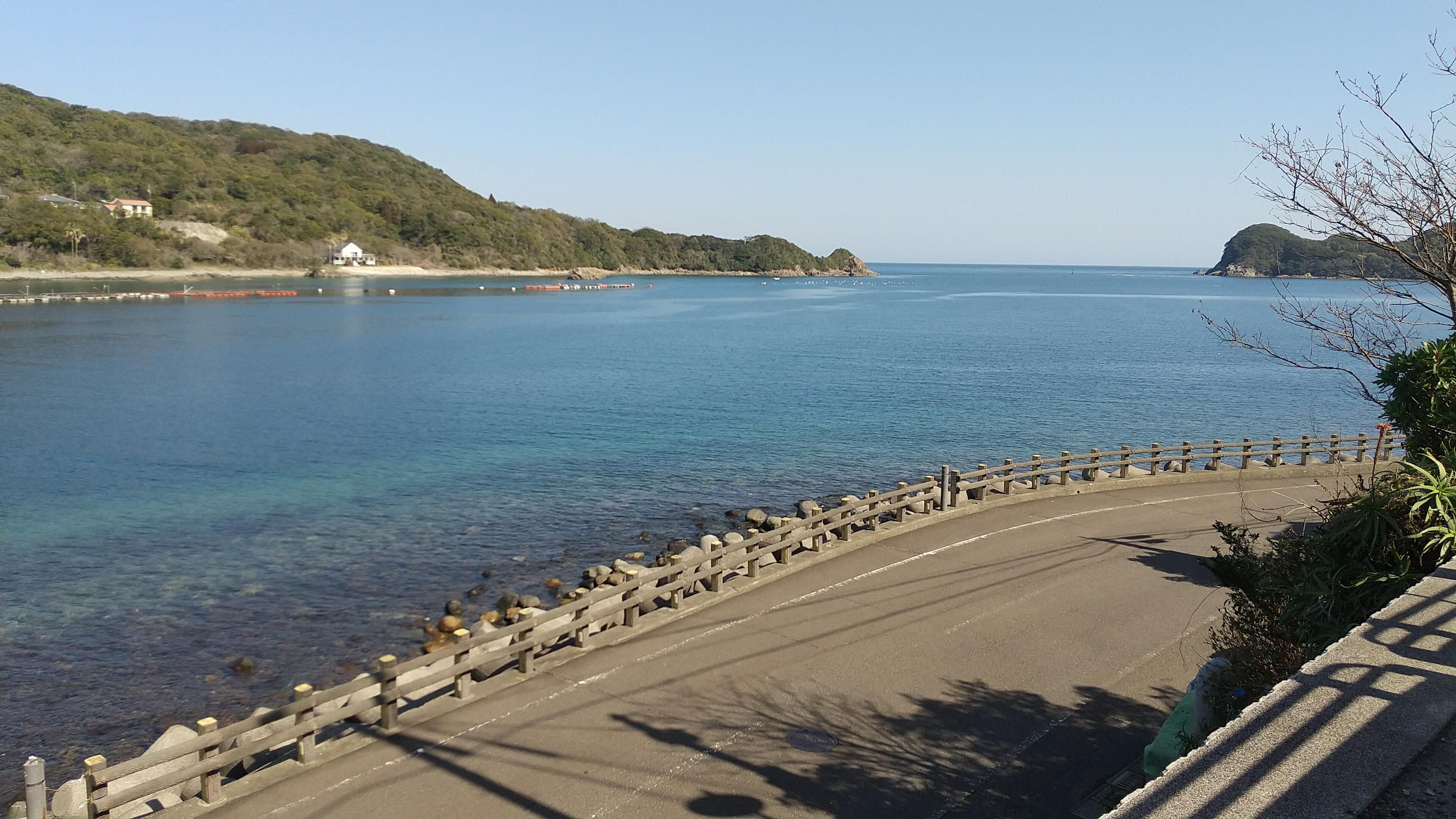 近隣から見える海の景色。水が透明に透き通っていて、泳いでいる魚が見えます。この先を10分ほど歩くと「御鉾ヶ浦海水浴場」「御鉾ヶ浦公園(キャンプ場)」があります。波が静かで、日の出がとっても美しくておすすめです。