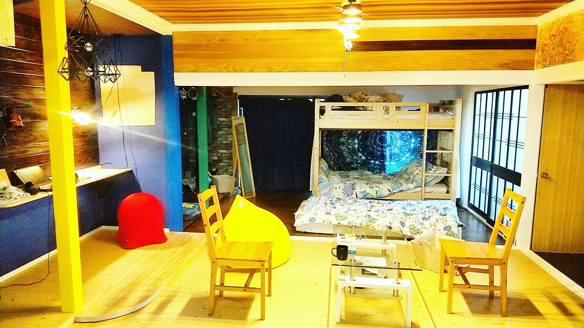 ゲストハウスのフロアは宿泊施設として運営する他、各種イベント会場としても活用します。また、普段から誰かしら遊びに来てお話をしたり、楽器を弾いたり、占いしたり、セッションしたり、突発的にお祭りのようなことが始まる場所にしたいと思っています。