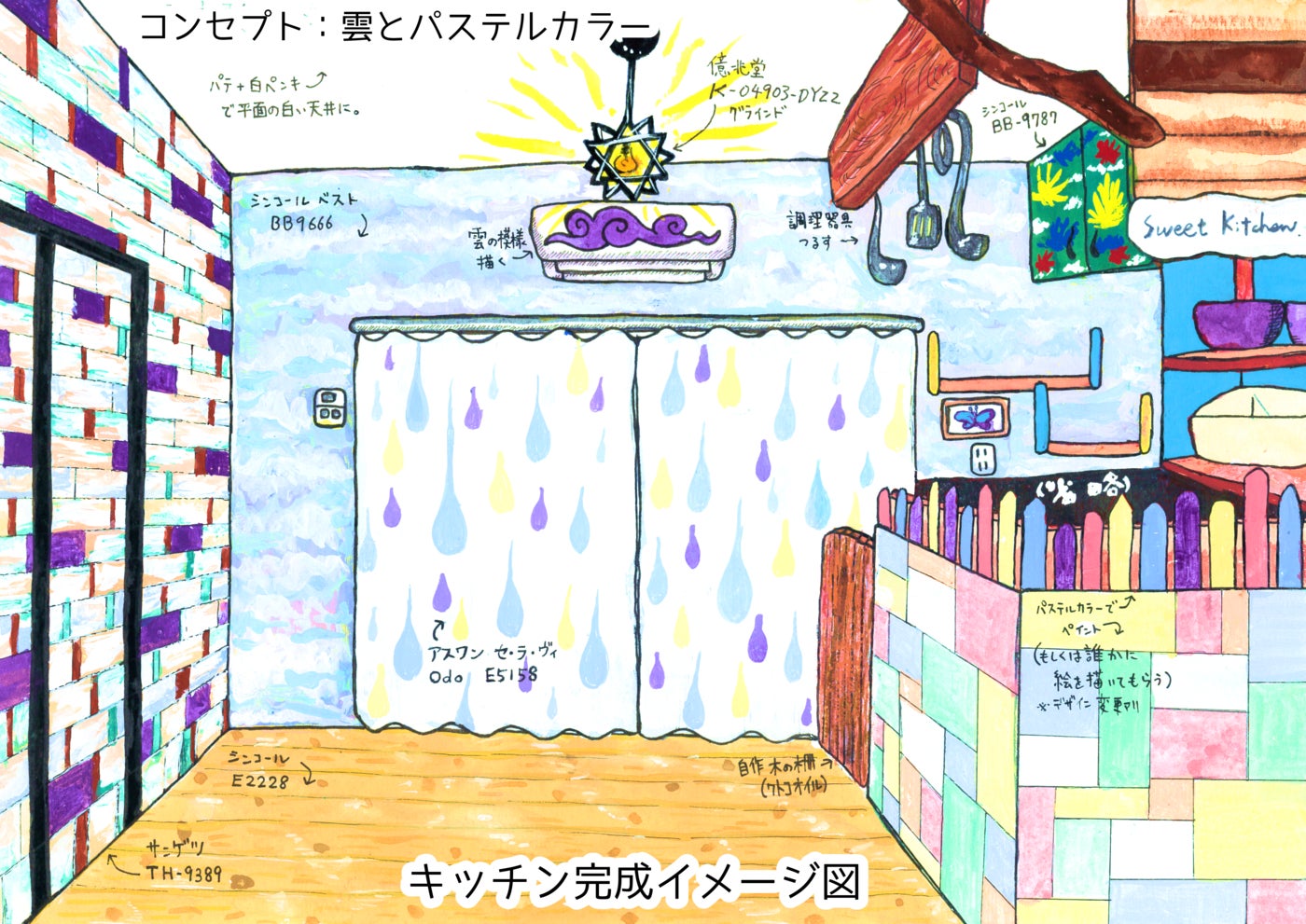 「雲」もしくは「風」をテーマに、ファンシーなパステルカラーを配色し、明るくて可愛らしくて安心できる空間にしたいです。