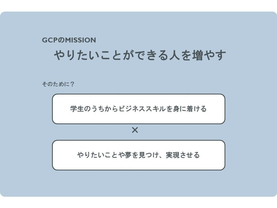 GCPは「やりたいことができる人を増やす」をミッションに掲げています。