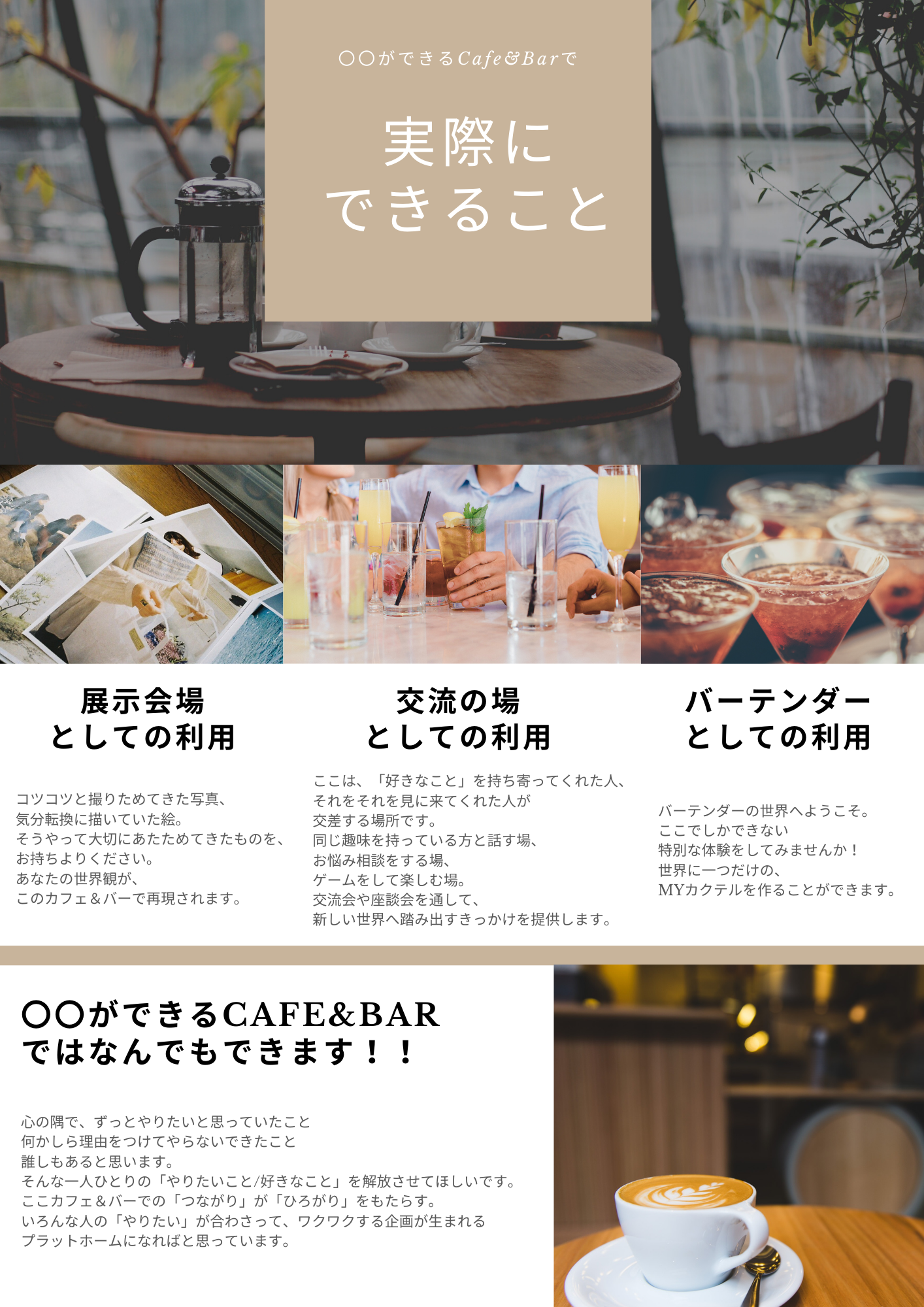 改めて店名は、「○○ができるCafe&Bar」です。