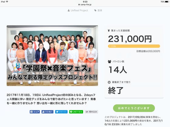 2017/10/17 00:49UnRealProjectのクラウドファンデイング。 なんと、目標金額を上回る結果となり 無事にSUCCESS致しました(T ^ T) お力添えいただいたみなさま 本当に、本当にありがとうございました!! UnRealProjectは 本当にたくさんの方の応援、支えがあるからこそ 成り立っている団体です。 本当にありがとうございます。 言葉では伝えきれない、感謝や想いは ステージで、パフォーマンスで、歌で みなさまに少しでもお返ししていきたいと思います。 素敵な"想い出の1ページ"を 創りあげていきます。 本当にありがとうございます❗️❗️ 当日お会いできる方は、お会いできるのを楽しみに… 当日お会いできない方も、ご声援を励みに… UnRealProjectを これからもどうぞ 応援よろしくお願いいたします╰(*´︶`*)╯♡ もっと見る