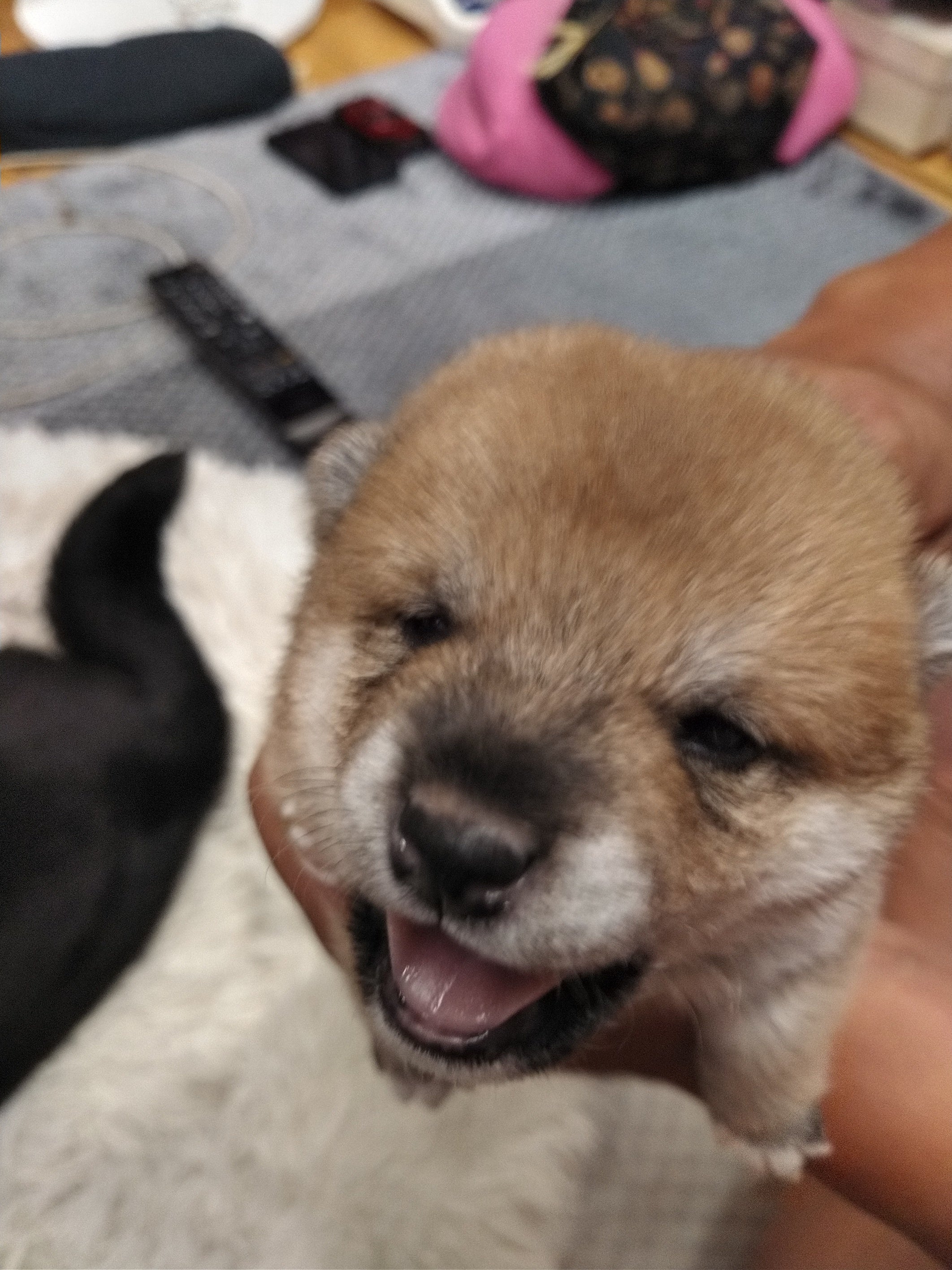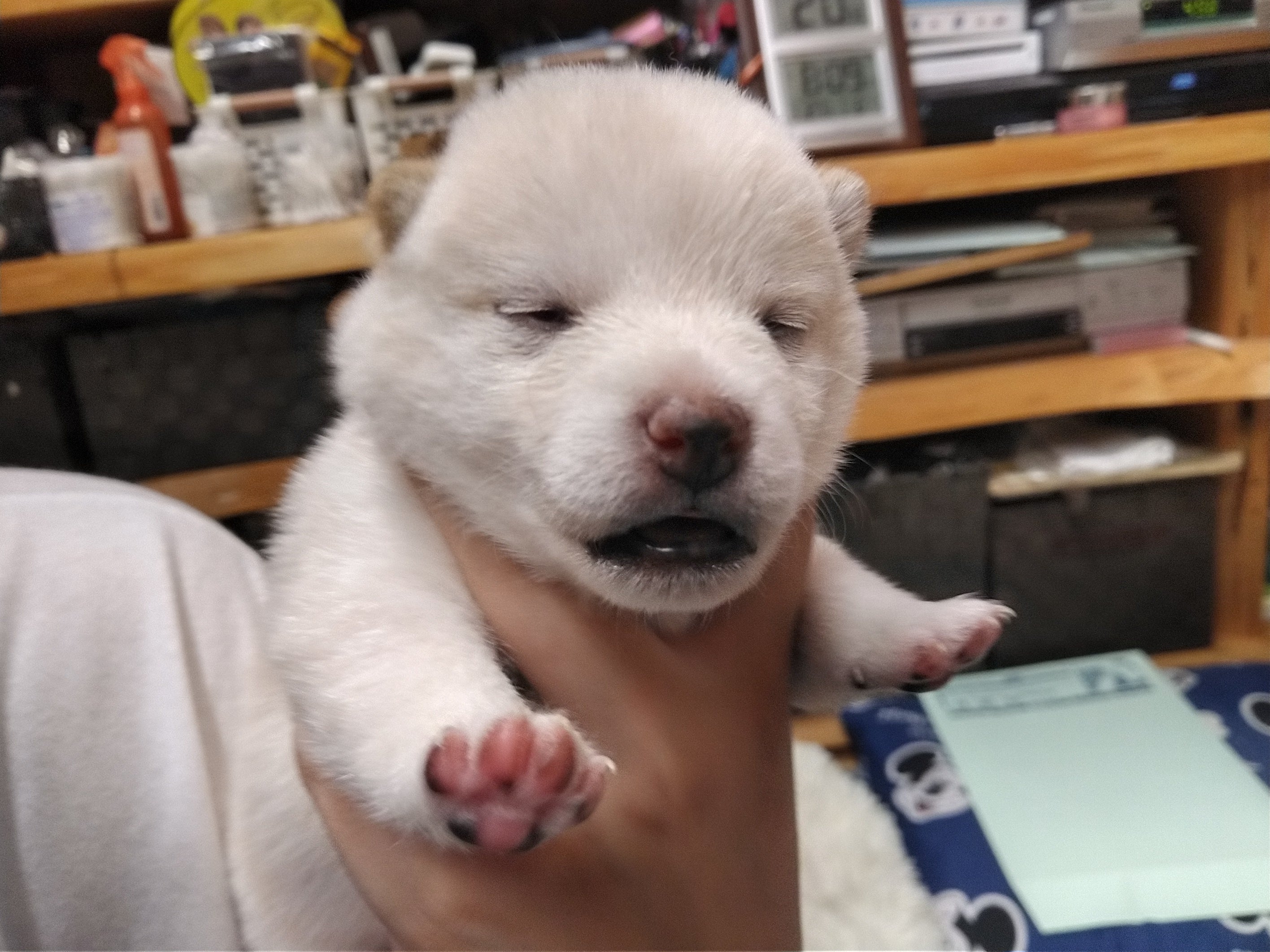 豆柴の仔犬生後16日目ようやく2匹目が目を開けました。後もう1匹はまだ現実逃避してるのかな?