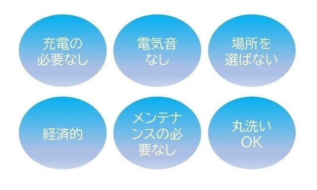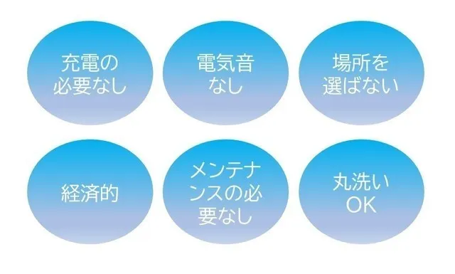 また、電気を使わないので浴室などの掃除にもぴったりです。