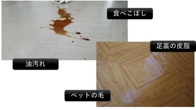 水分だけではなく、床のべたつきもキレイにふき取ります。