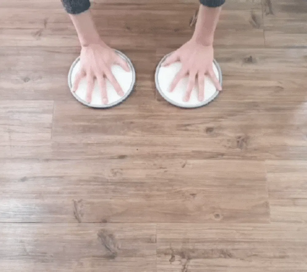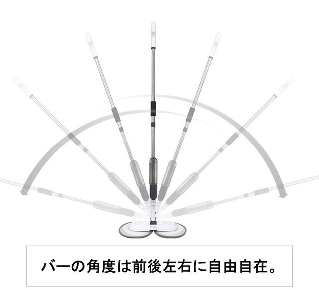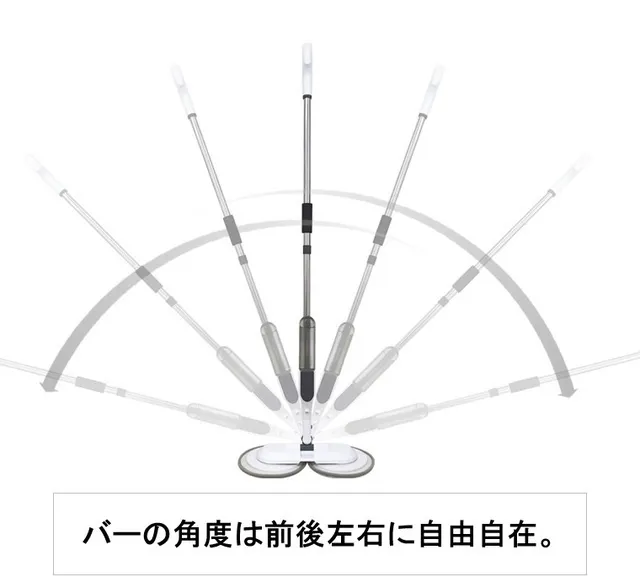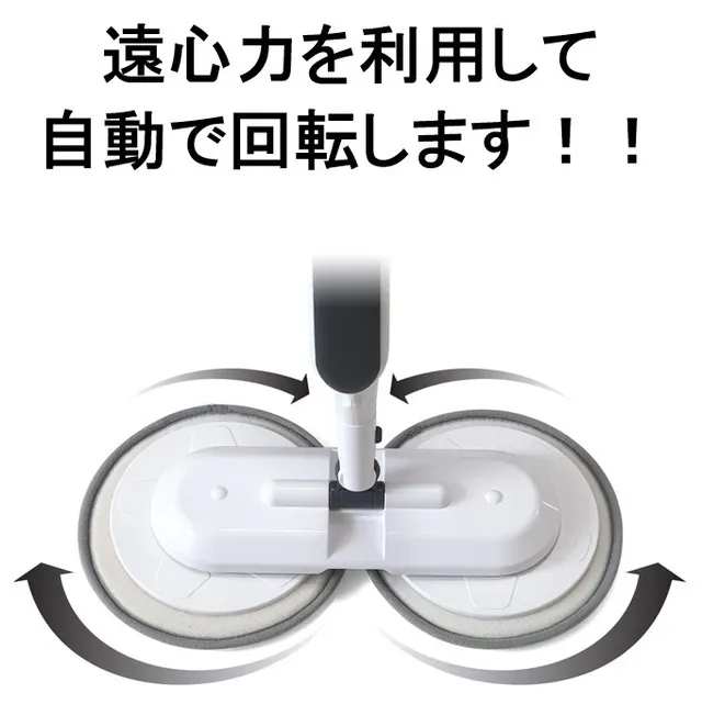 モップを前後に動かす力を遠心力に変えてパット部分が回転します。