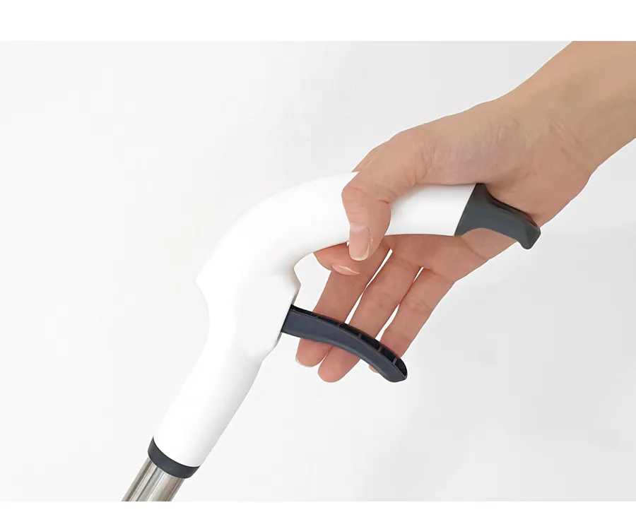 専用スプレーボトル内蔵。手元のノズルで汚れに直接スプレー出来るので
